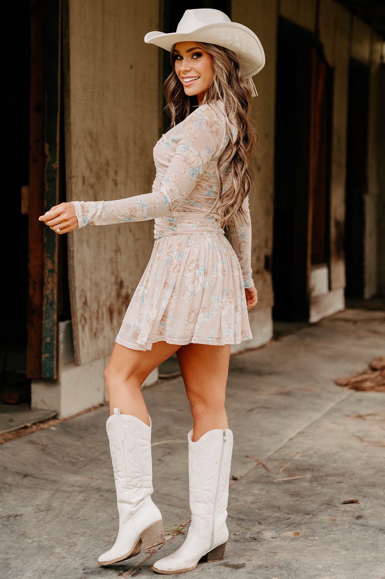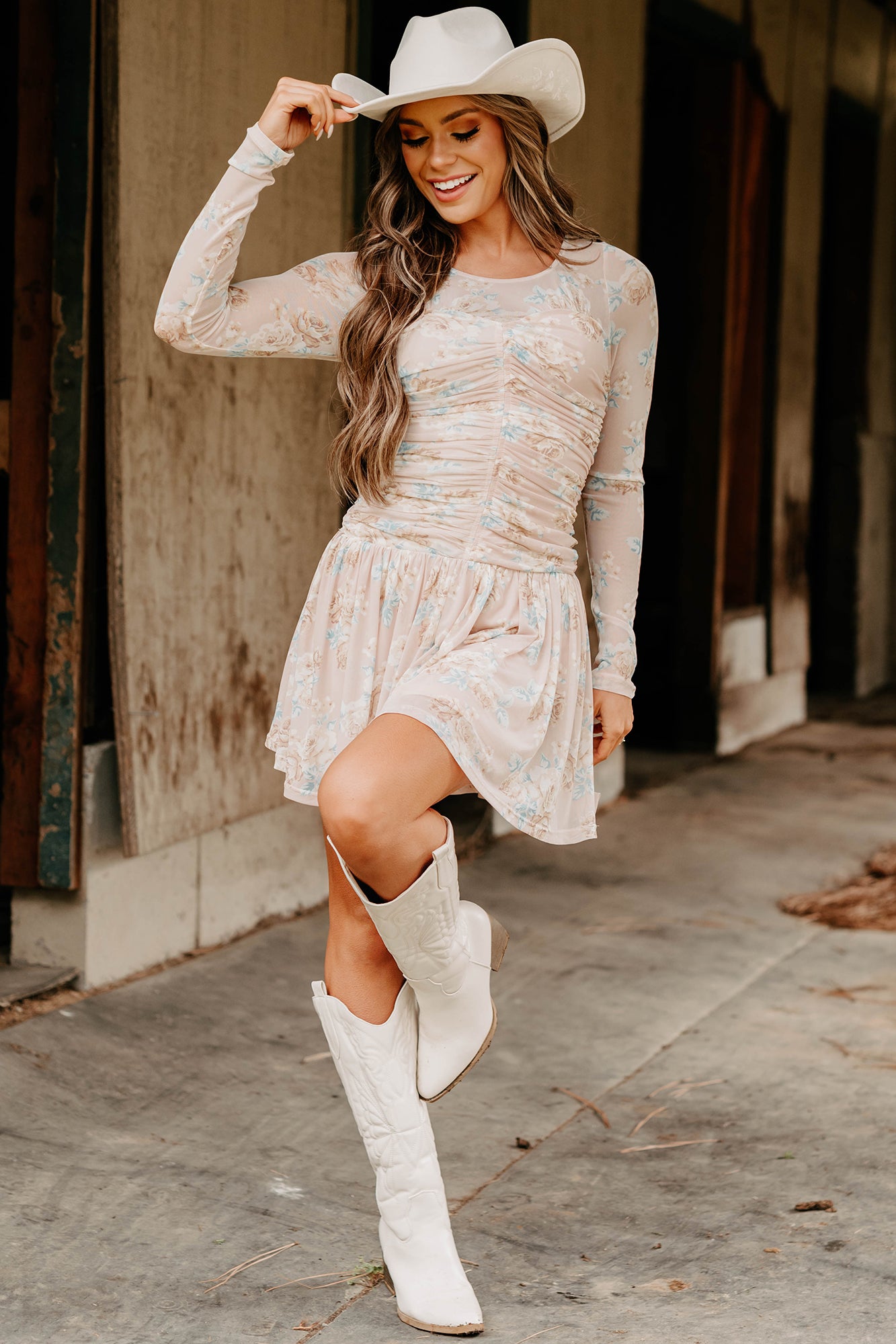 Sweet As Summer Floral Ruched Mini Dress (Blush)