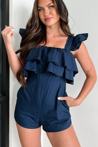 Sweet As They Come Tiered Ruffle Romper (Navy)