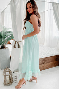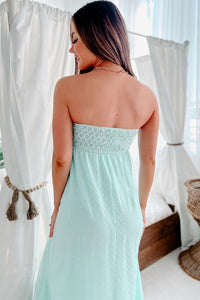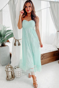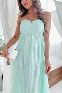 Sweet Daydreams Dotted Mesh Strapless Midi Dress (Aqua)