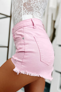Sweet Like Summer High Rise Distressed Denim Shorts (Pink)
