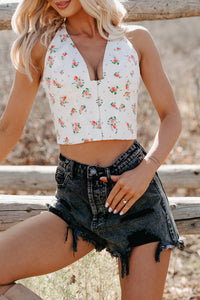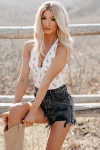 Sweet Tease Floral Halter Top (Off White) - NanaMacs
