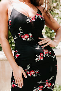 Sweeter Than Before Floral Embroidered Mesh Midi Dress (Black)