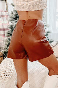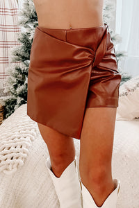 Tainted Love Twist-Front Faux Leather Skort (Camel)