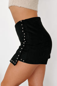 Terminally Stylish Studded Faux Suede Skort (Black)
