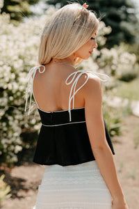 The Air I Breathe Linen Shoulder Tie Tank Top (Black) - NanaMacs