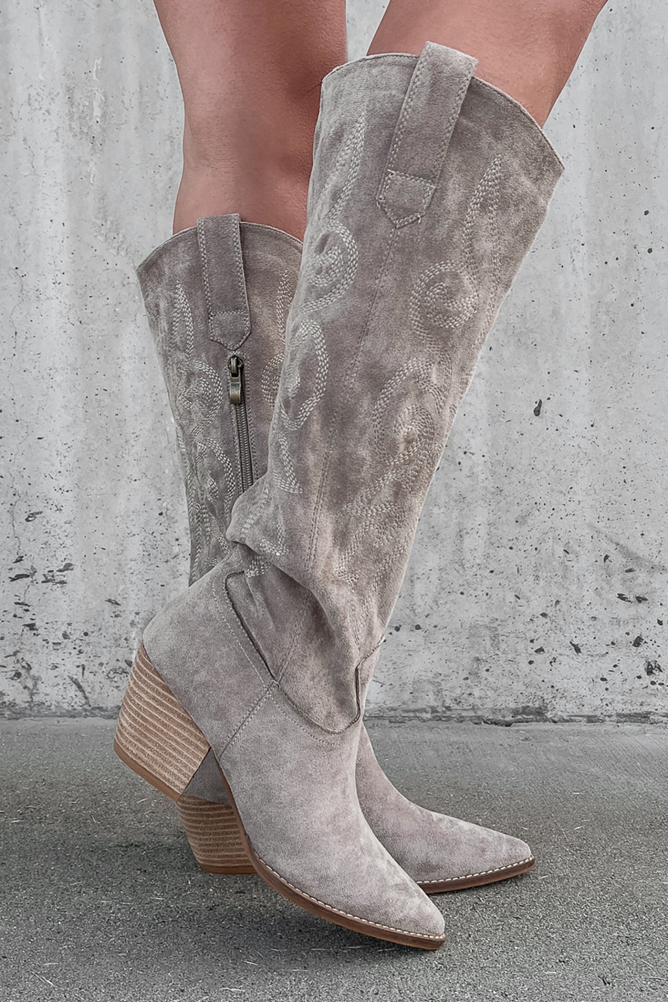 The Big Show Faux Suede Cowboy Boots (Grey)