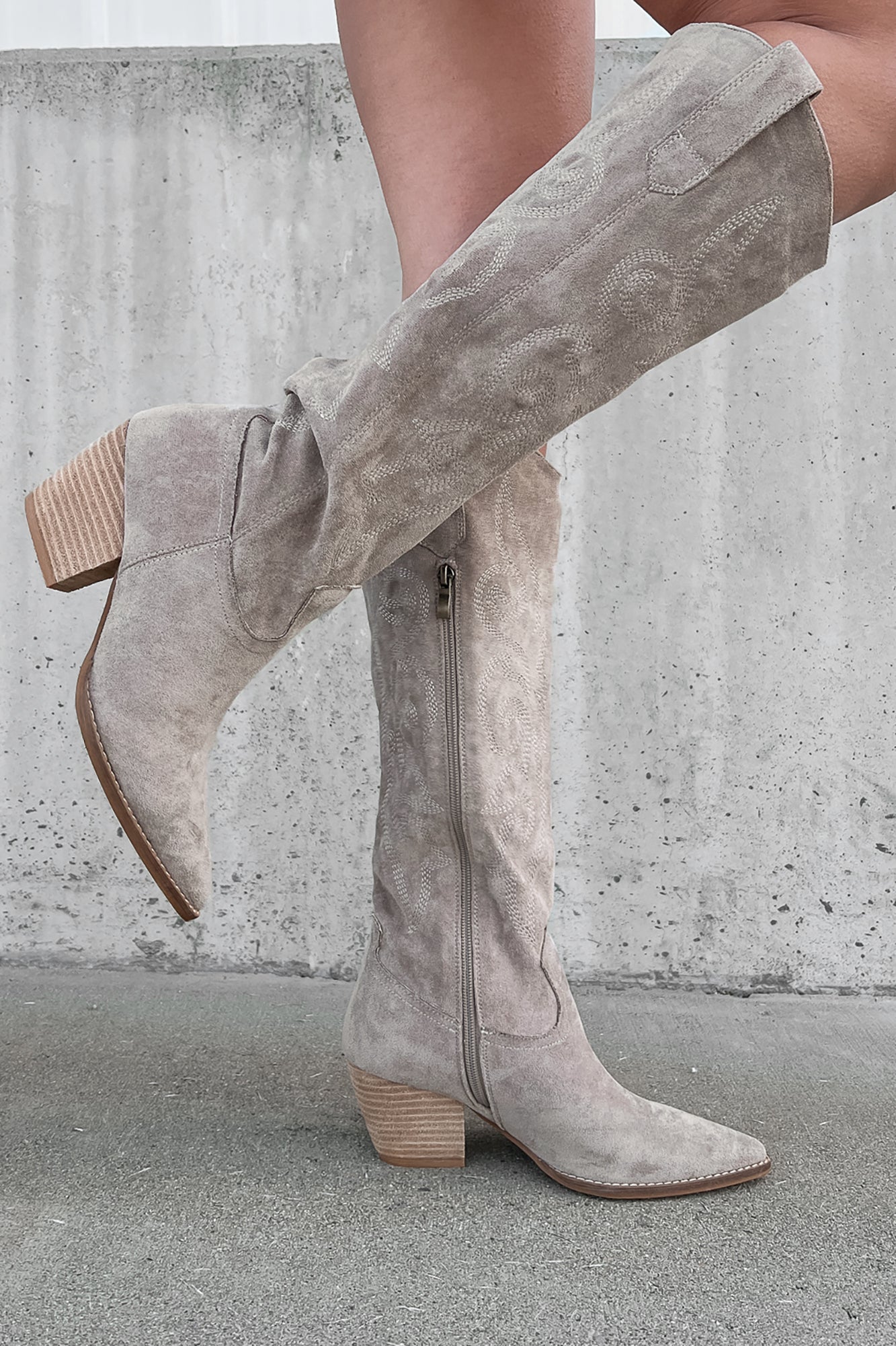 The Big Show Faux Suede Cowboy Boots (Grey) - NanaMacs