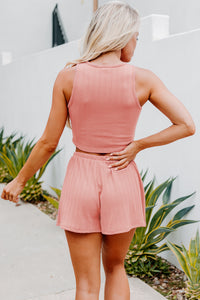 We're Loving This Mauve, Ribbed, Crop Tank Top & Shorts, Two-Piece Set!