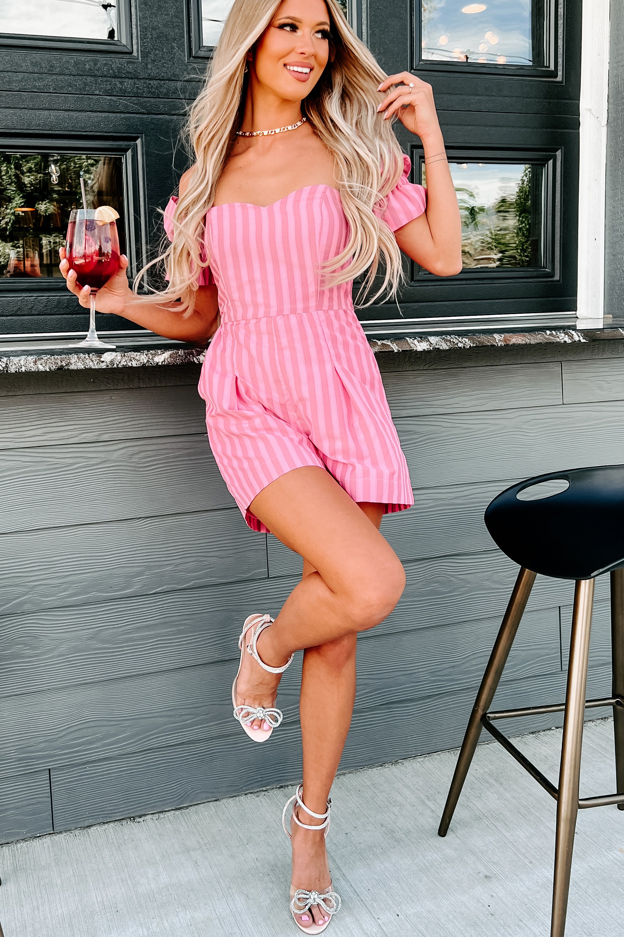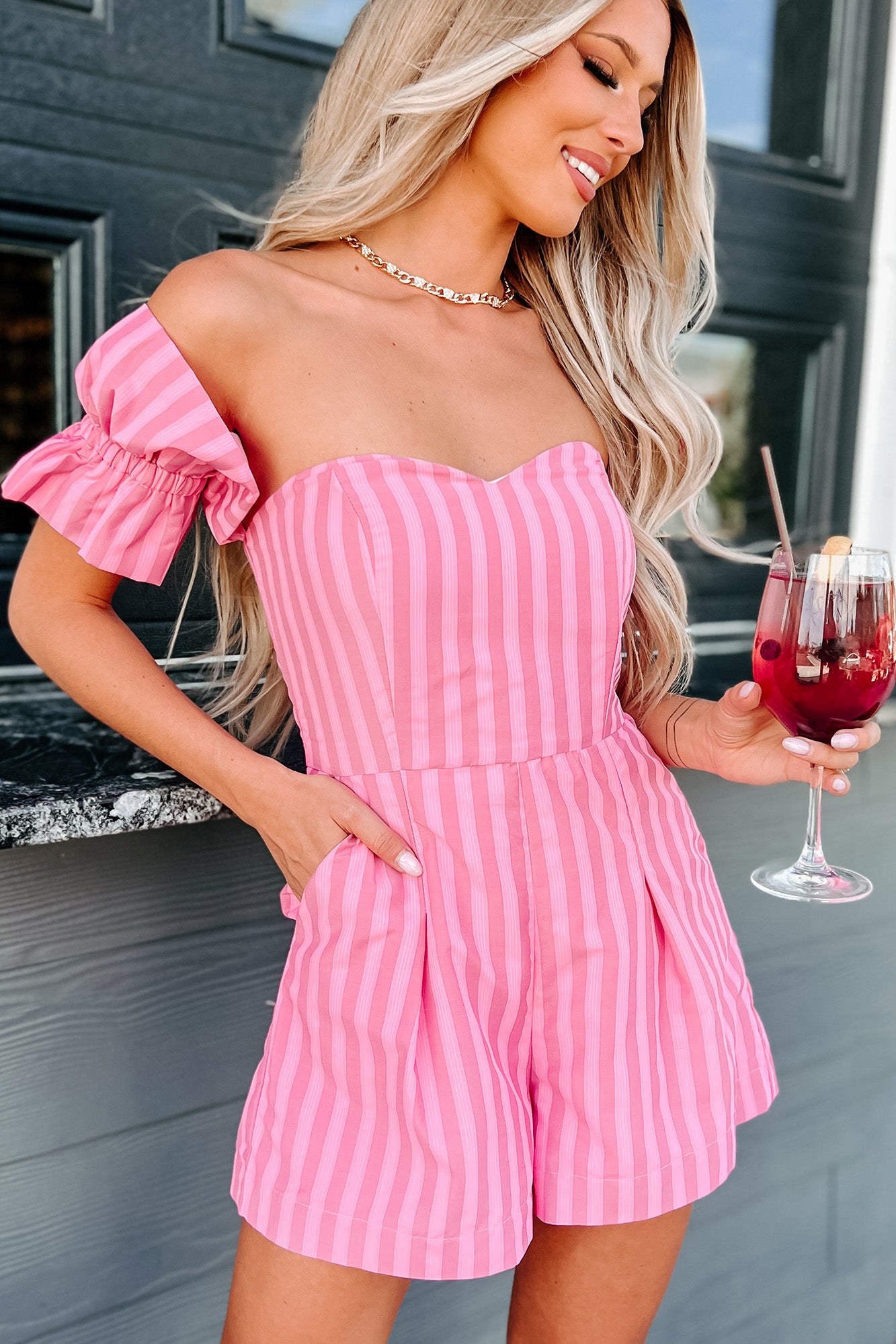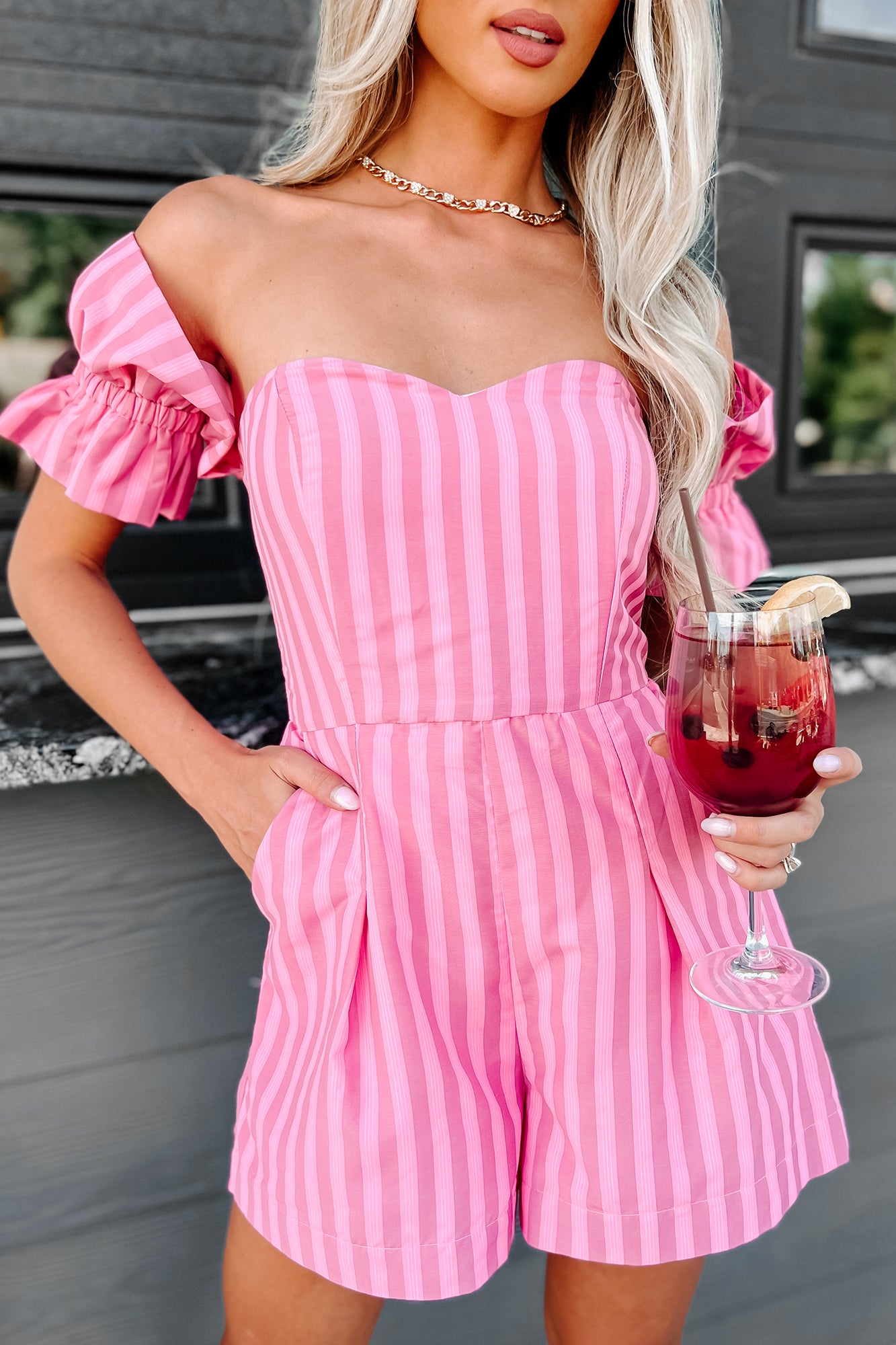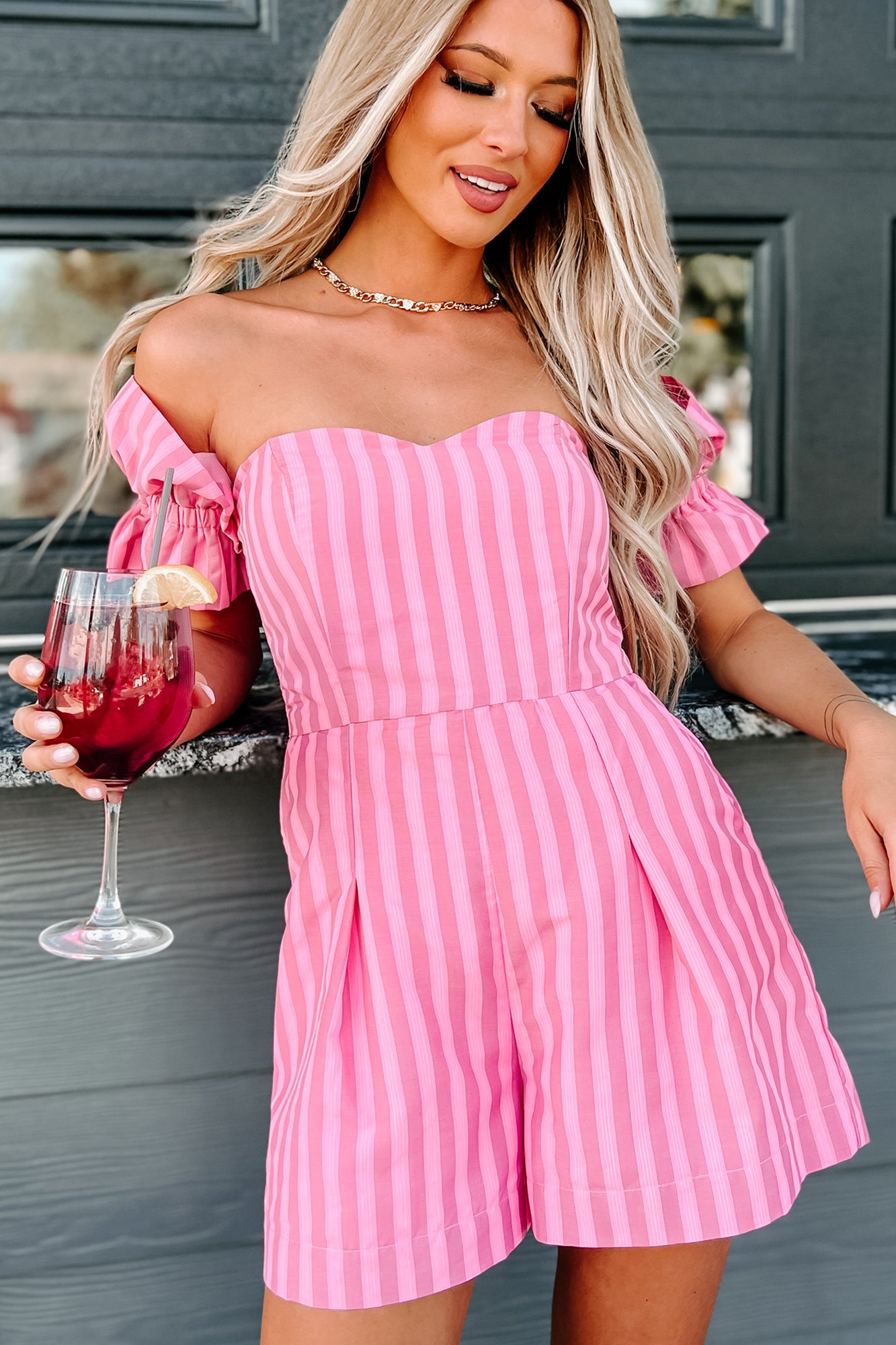 The Way To Love Off The Shoulder Striped Romper (Pink) - NanaMacs