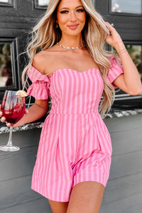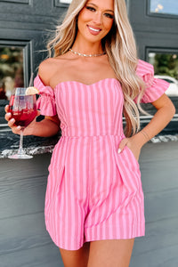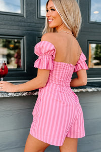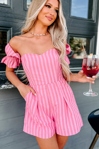 The Way To Love Off The Shoulder Striped Romper (Pink)