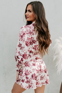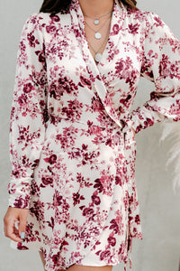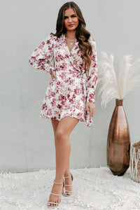 There's Only You Satin Floral Wrap Dress (Cream/Wine)