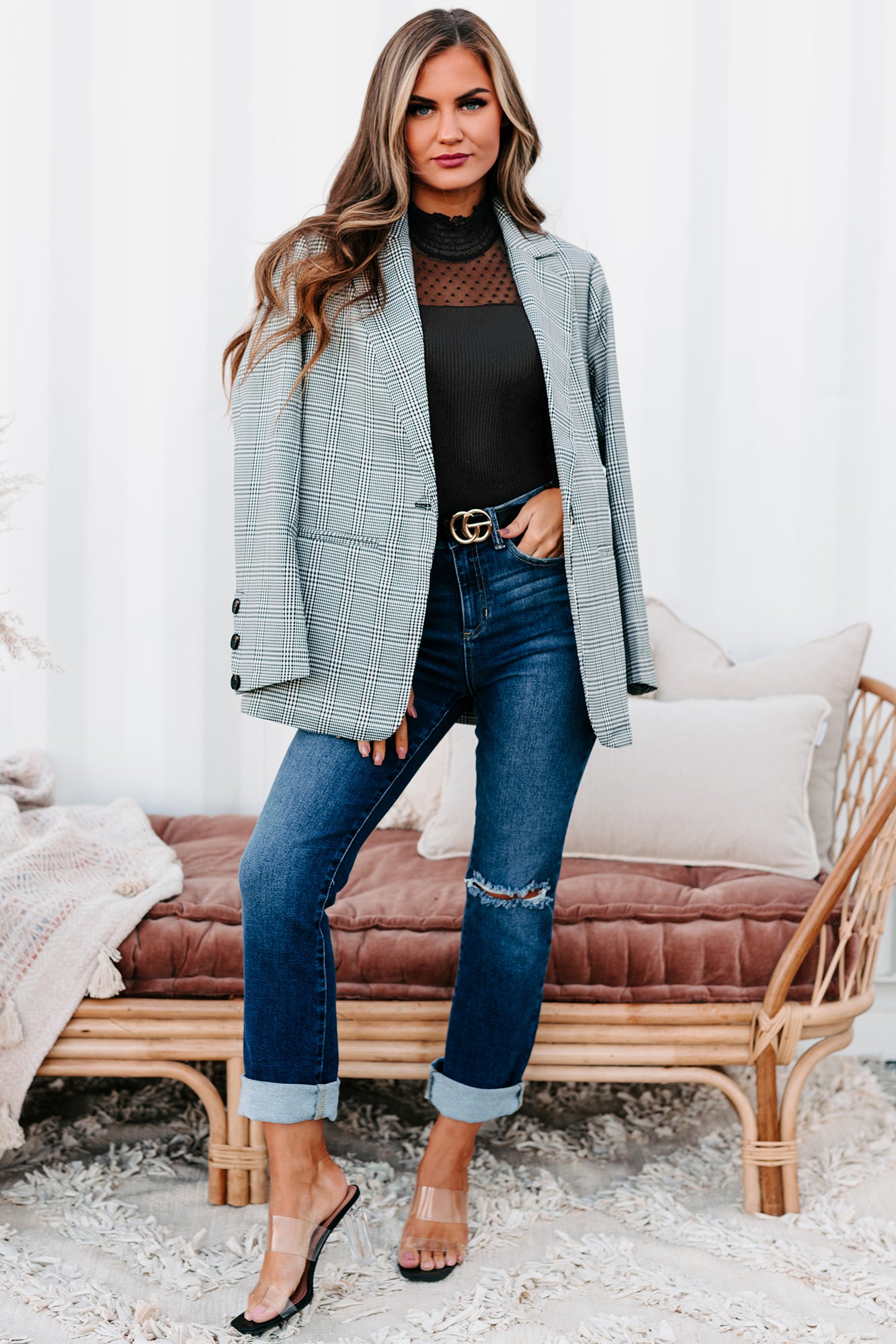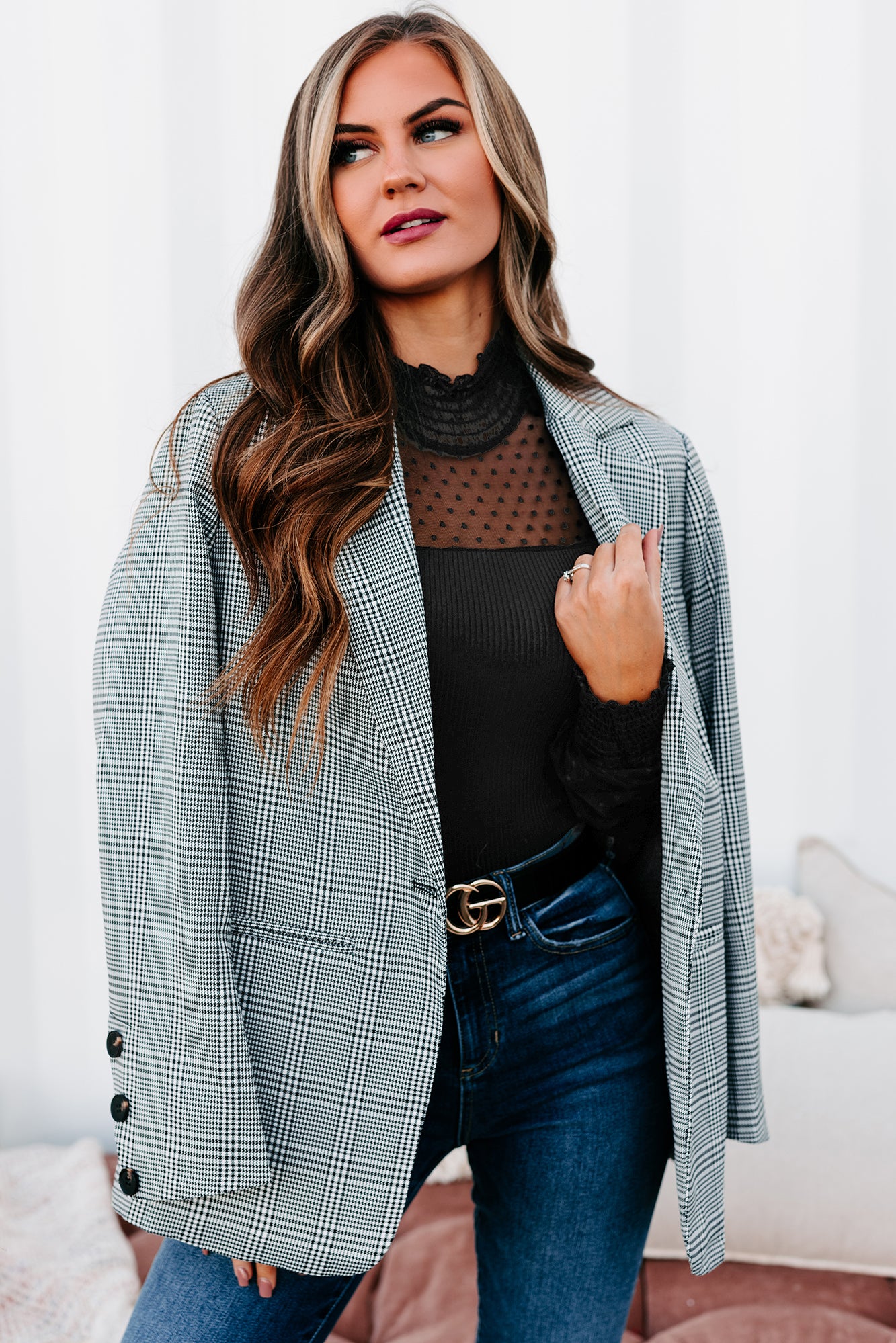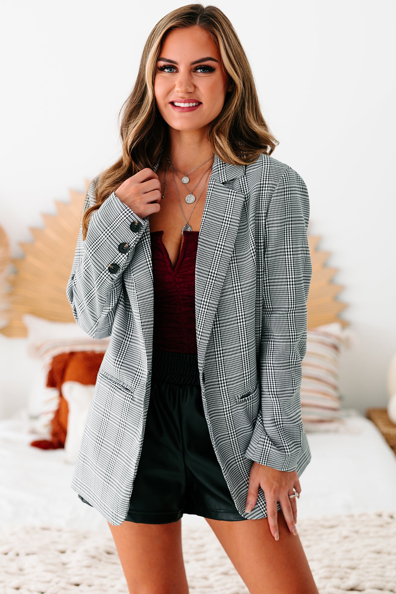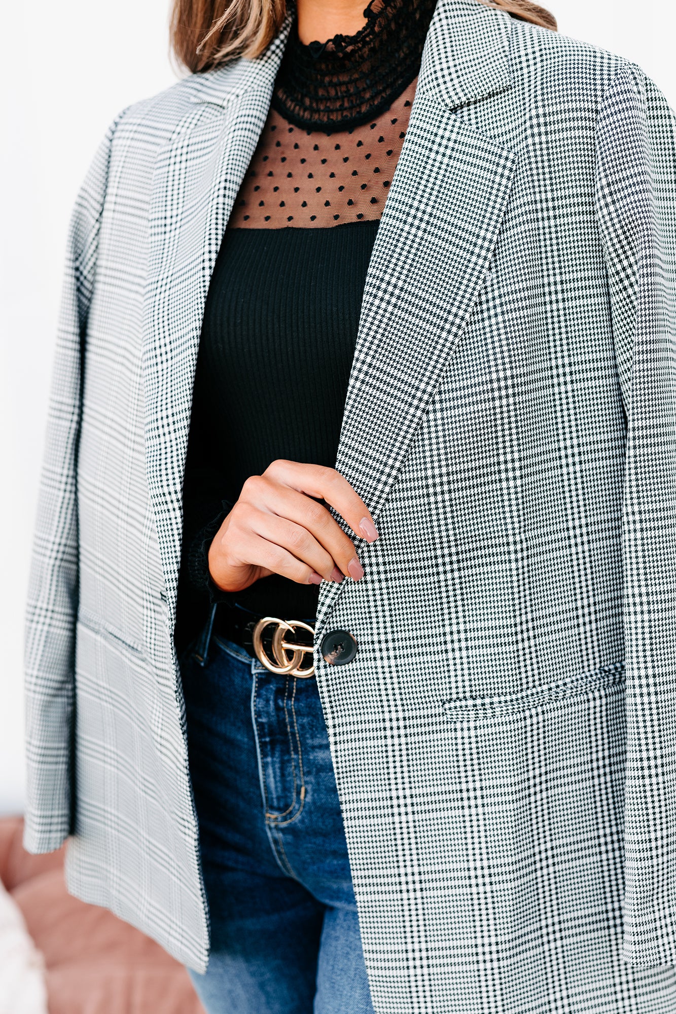 Time Is Money Oversized Plaid Blazer (Black) - NanaMacs