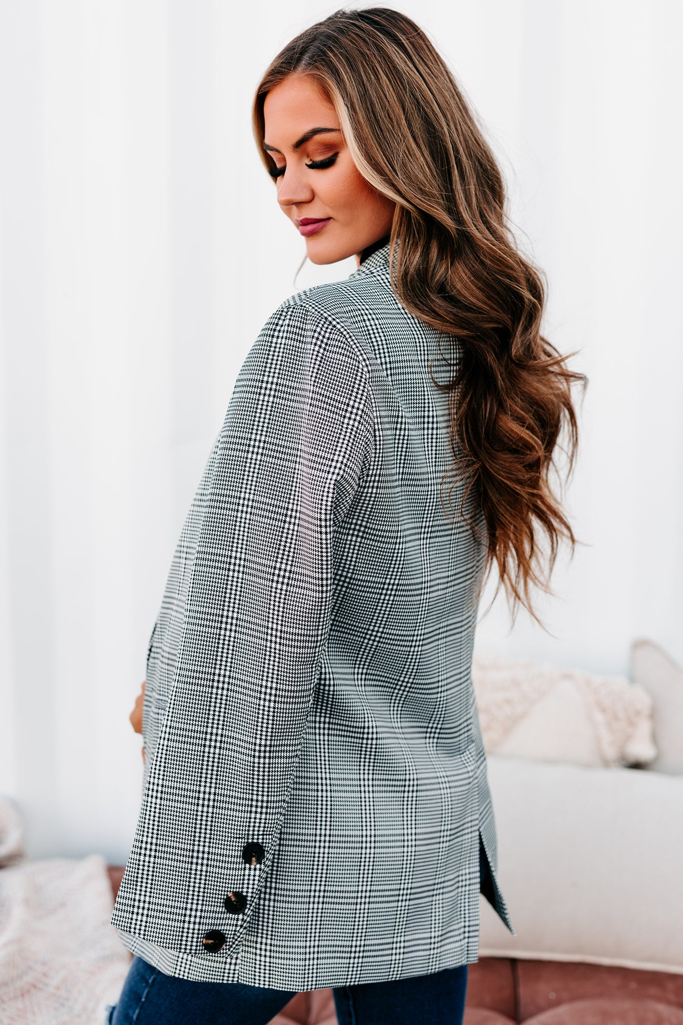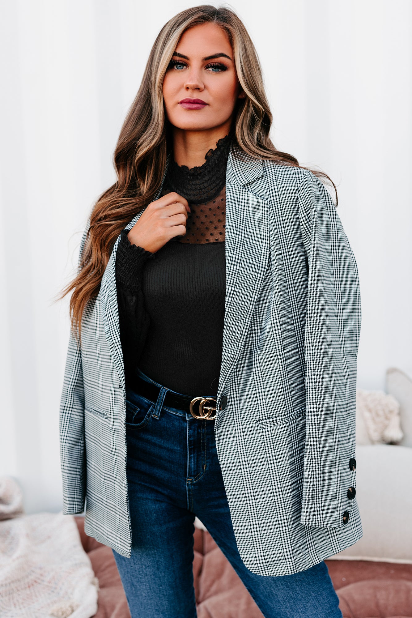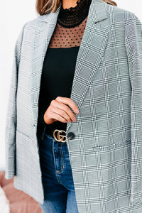 Time Is Money Oversized Plaid Blazer (Black)