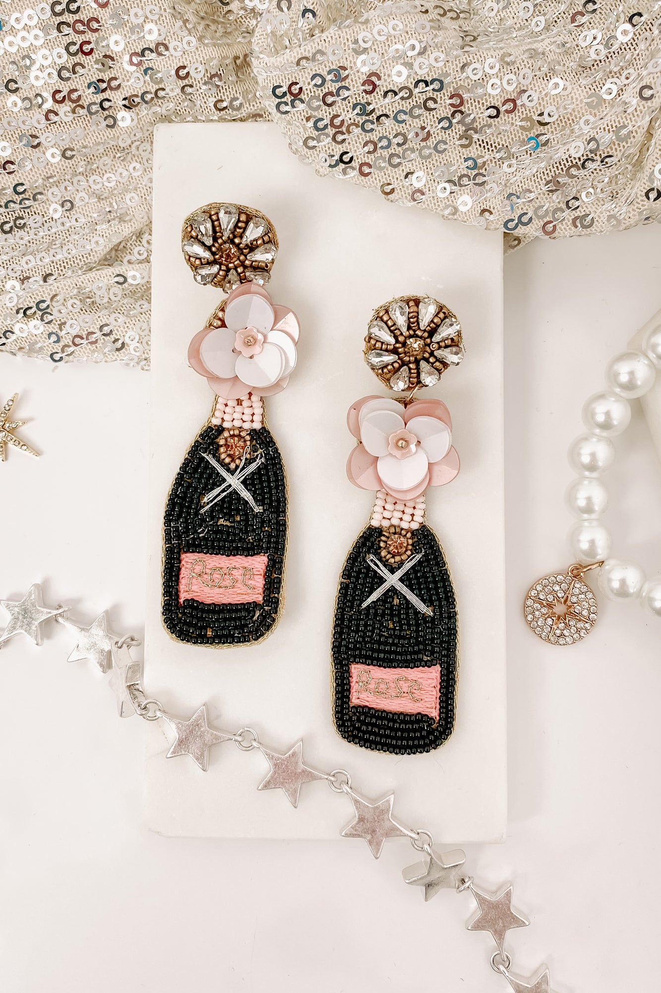 Toast To Us Beaded Earrings (Pink/Black) - NanaMacs