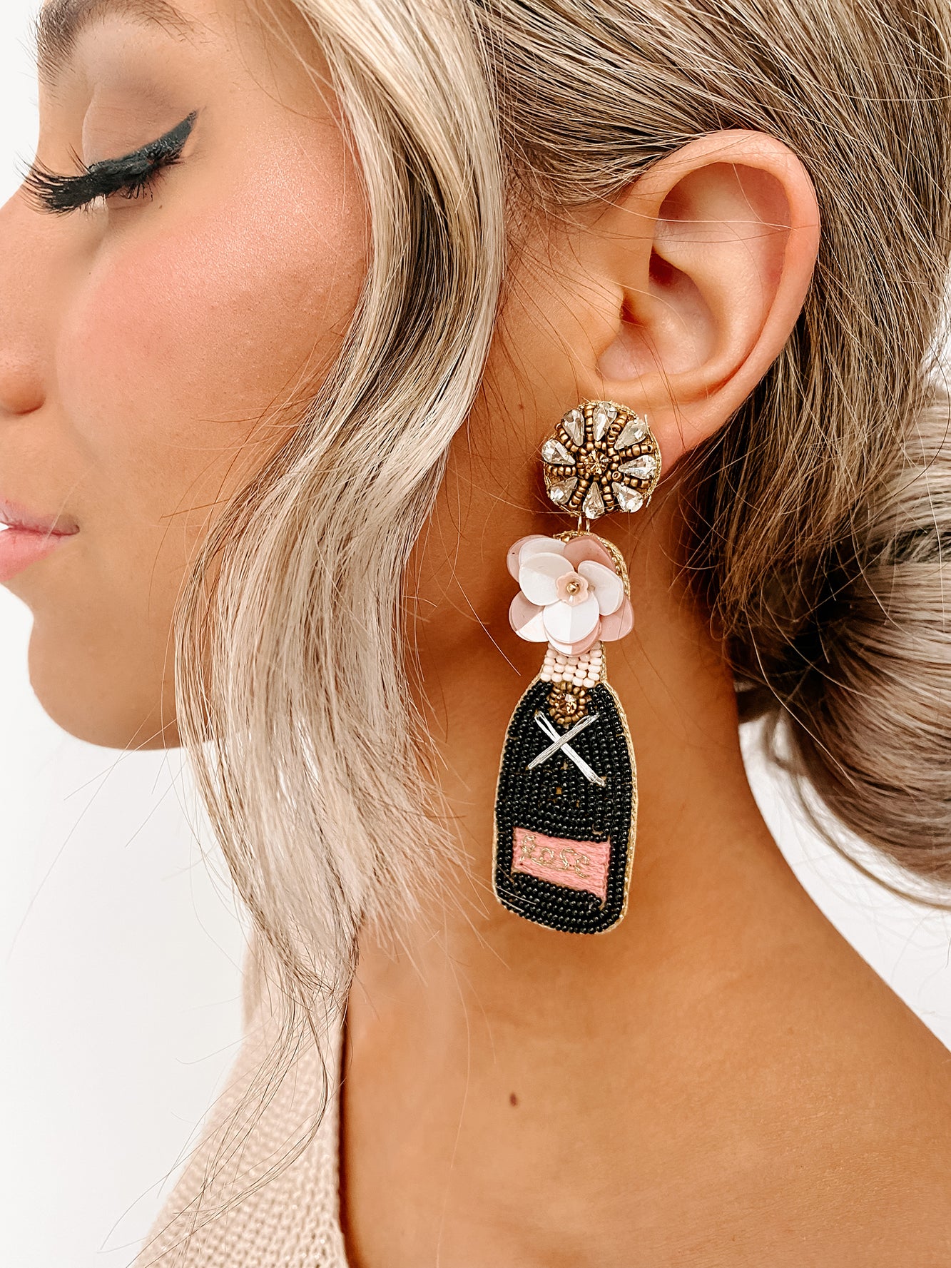Toast To Us Beaded Earrings (Pink/Black)