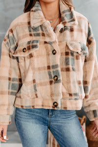 This Cream Plaid, Faux Fur Jacket Is So Cute, And Oh So Cozy!