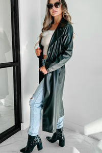 Trendset Faux Leather Trench Coat (Black) - NanaMacs