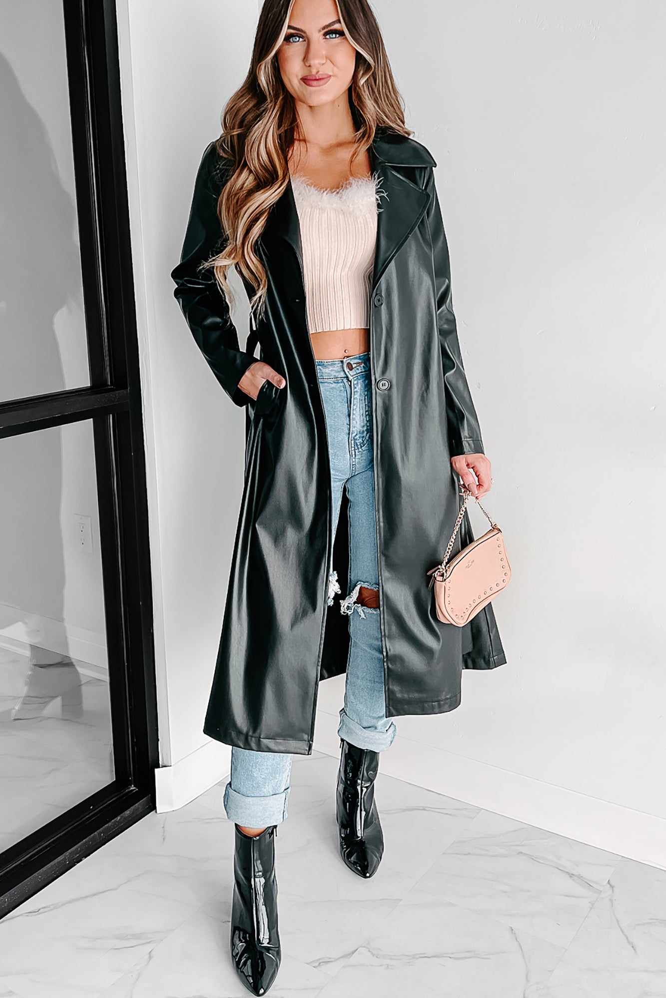 This Faux Leather Trench Coat Is So Chic, It'll Never Go Out Of Style!