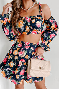 Tulum Toasts Floral Two-Piece Skirt Set (Navy Blue)