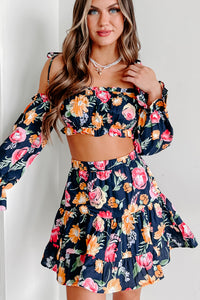 Tulum Toasts Floral Two-Piece Skirt Set (Navy Blue) - NanaMacs