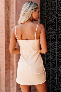 Dance The Night Away In This Ecru, Cowl Neck, Twist Knot, Mini Dress!