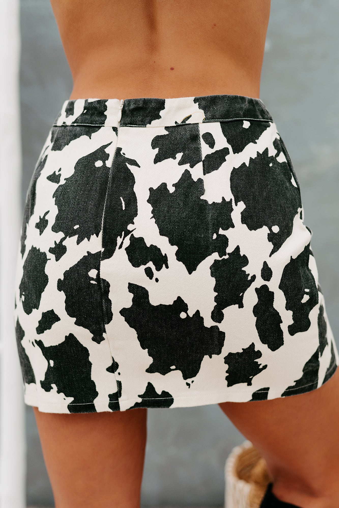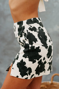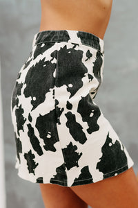 Get Spotted In This Cream & Black, Cow Printed Mini Skirt!