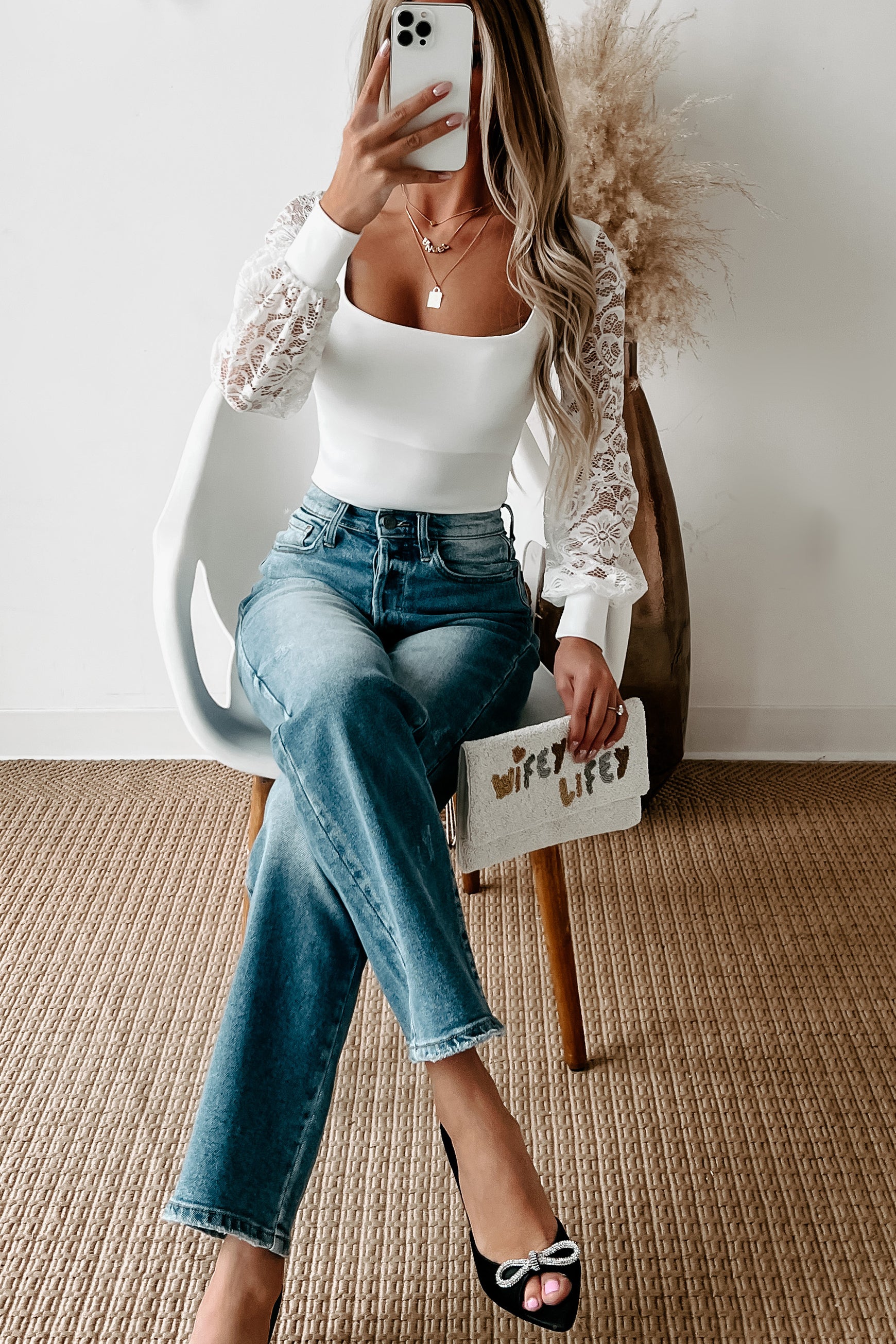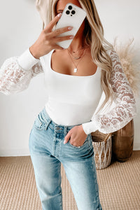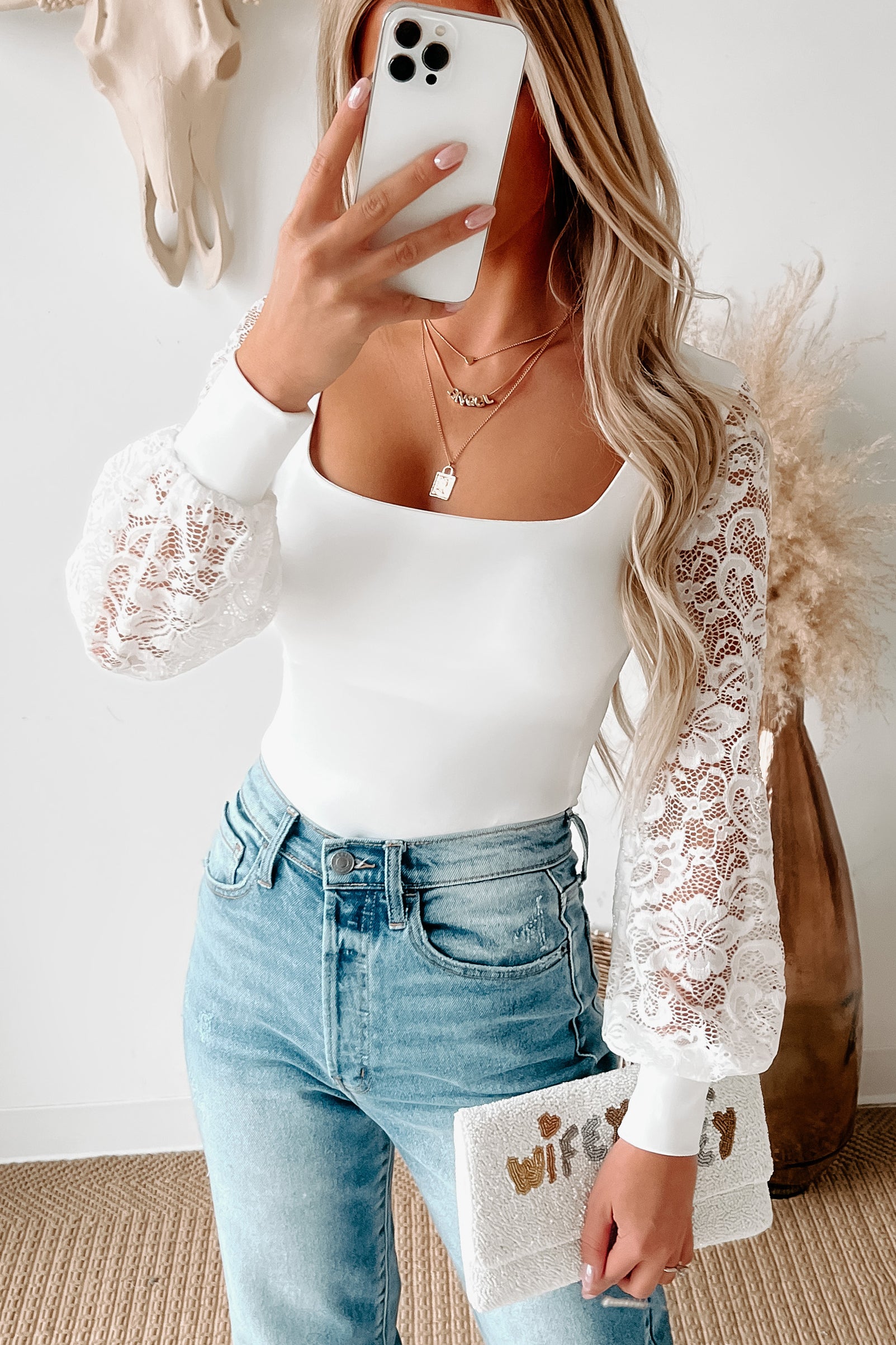 Doorbuster- Unbreakable Love NanaMacs Original Lace Sleeve Bodysuit (Off White) - NanaMacs