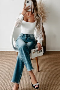 Doorbuster- Unbreakable Love NanaMacs Original Lace Sleeve Bodysuit (Off White)