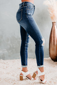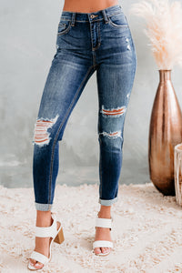 Unconditionally Yours Sneak Peek Mid-Rise Distressed Skinny Jeans (Medium Dark) - NanaMacs