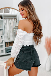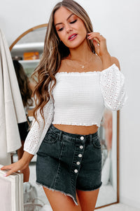 Undeniable Love Smocked Eyelet Sleeve Crop Top (White)