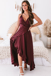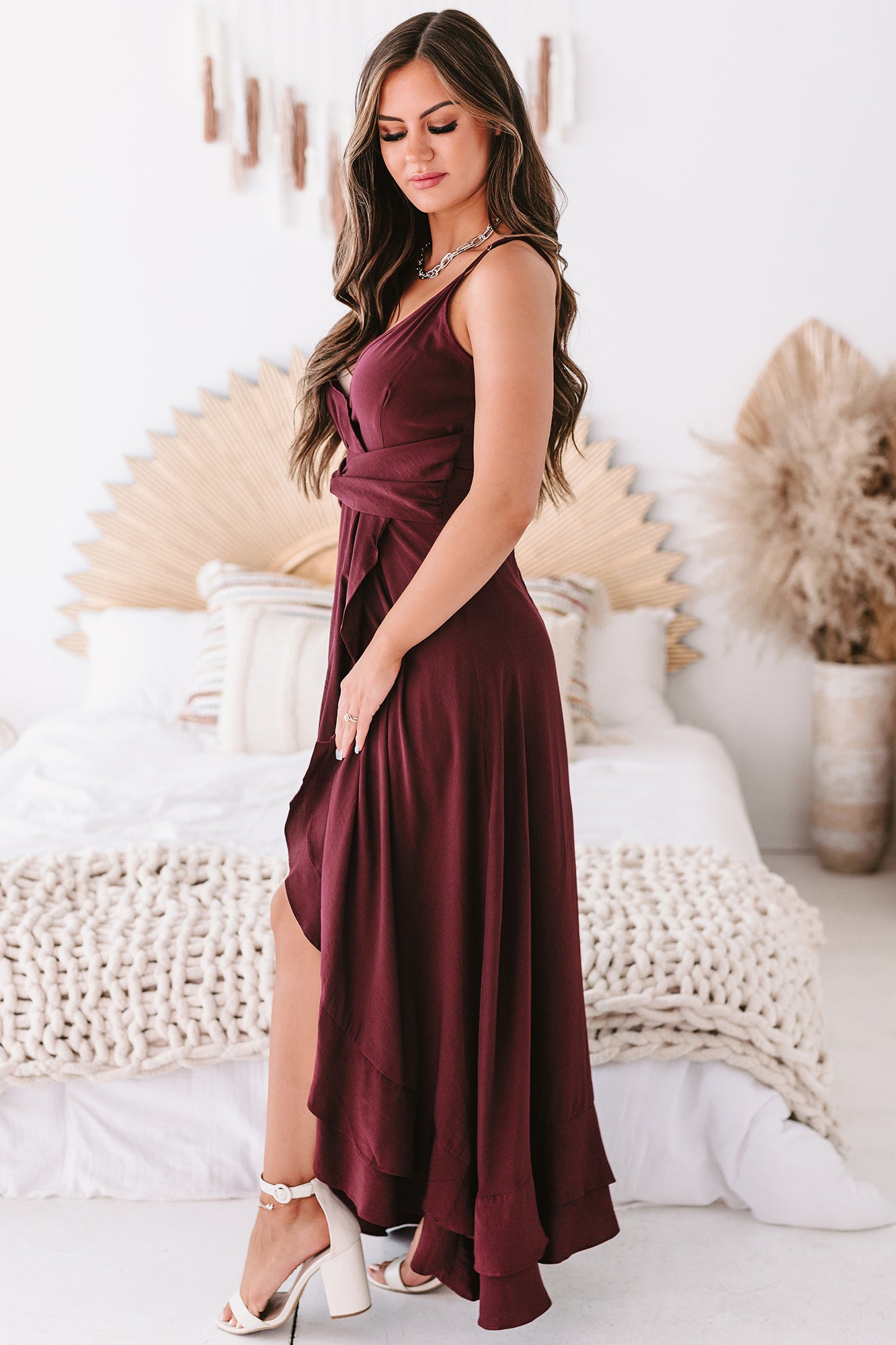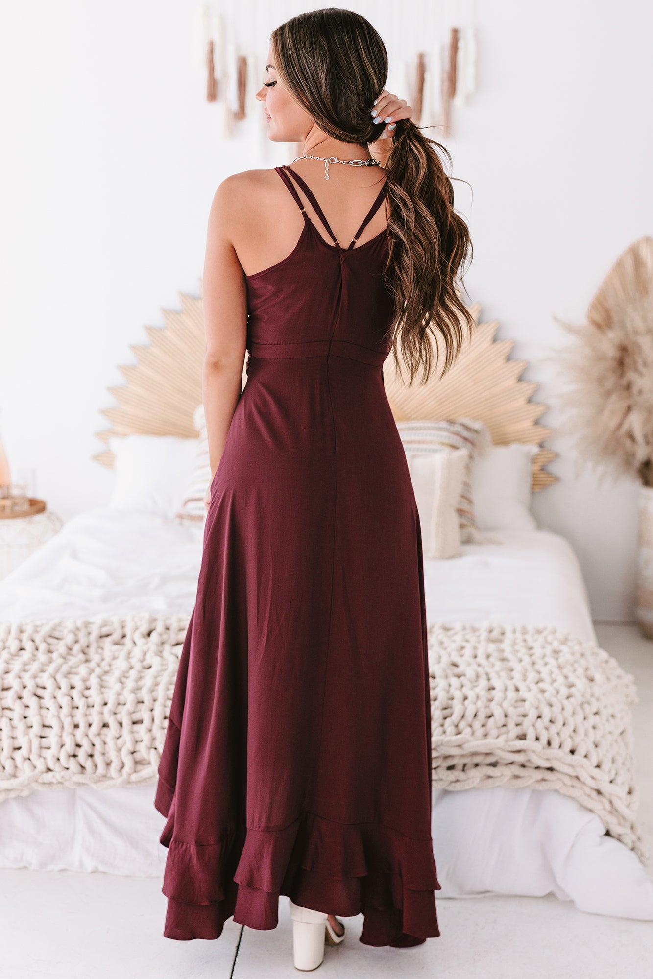 Undeniably Yours Cross-Back High-Low Maxi Dress (Burgundy)