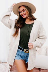 This Oatmeal, Open Front, Balloon Sleeved Cardigan Is A Great Option To Throw On Over Any Of Your Summery Tops!