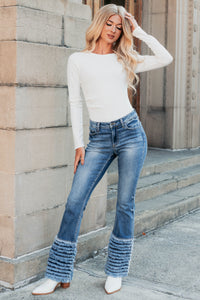 Vera Mid Rise Frayed Hem Cello Flare Jeans (Medium) - NanaMacs