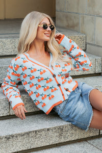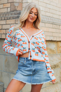 Vibrant Life Cherry Knit Cardigan (Light Blue/Orange)