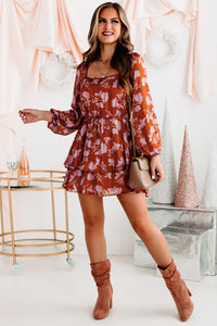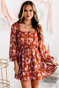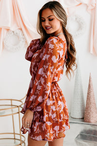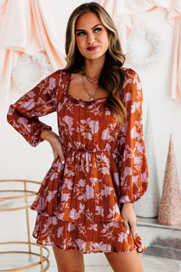 Vibrant Personality Floral/Striped Long Sleeve Mini Dress (Marsala/Lavender)