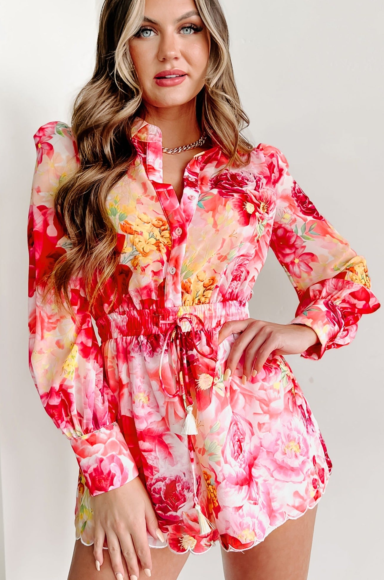 Vibrant Soul Floral Long Sleeve Romper (Pink Floral)