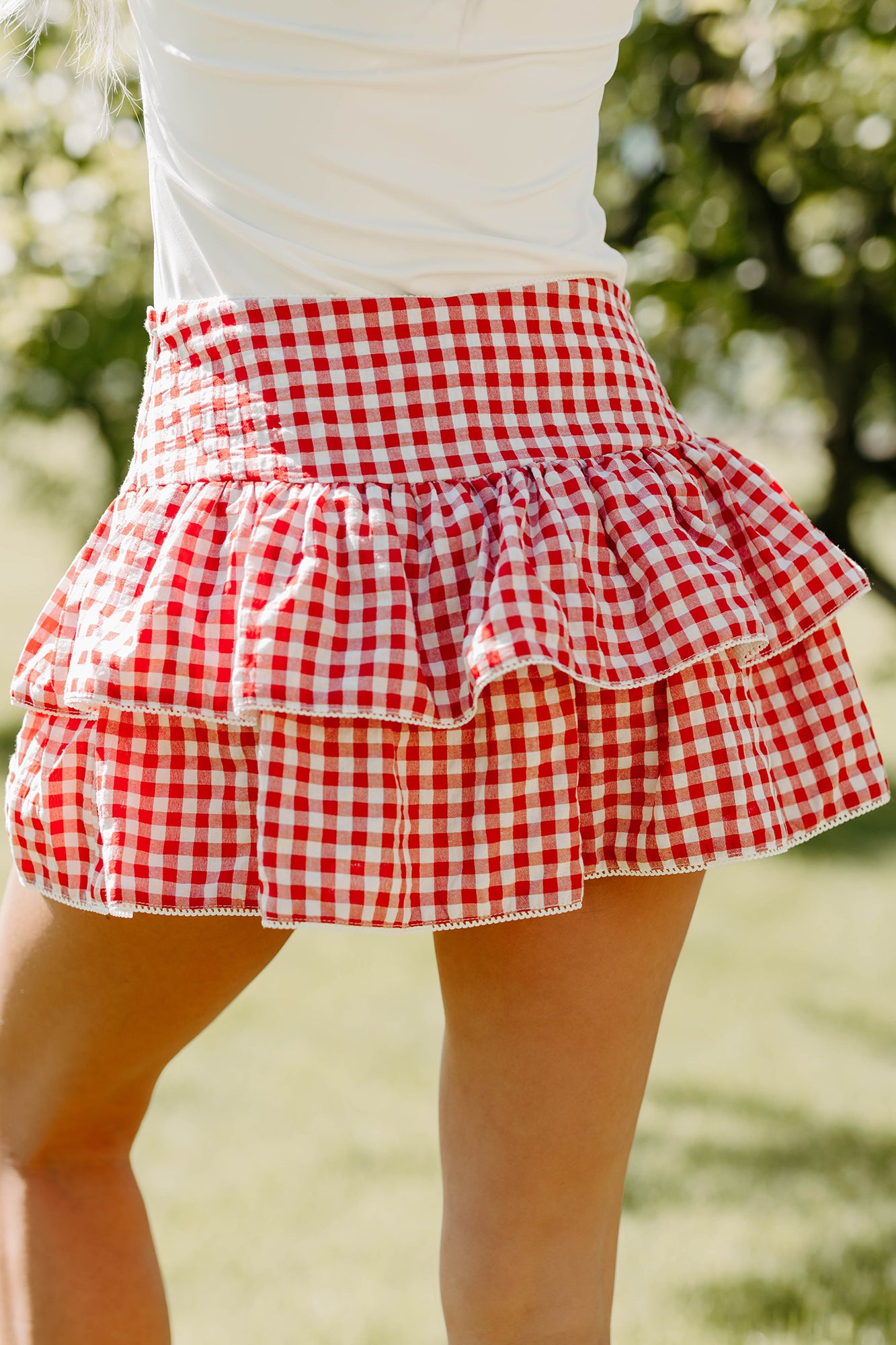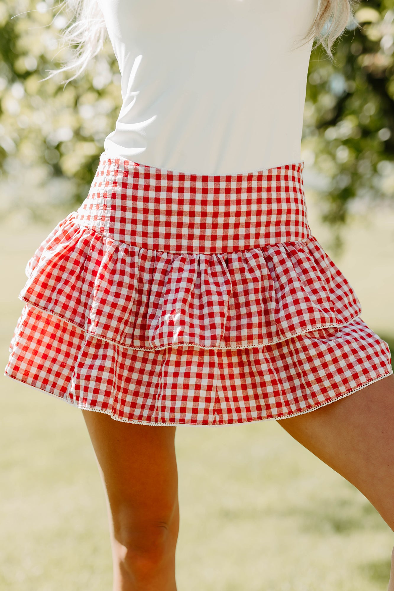 Vintage Valentine Gingham Mini Skirt (Red) - NanaMacs