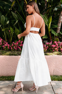 Make Everyone Take Notice When You Wear This White, Smocked Waist, Back Cut-Out, Pocketed, Cotton Midi Dress!