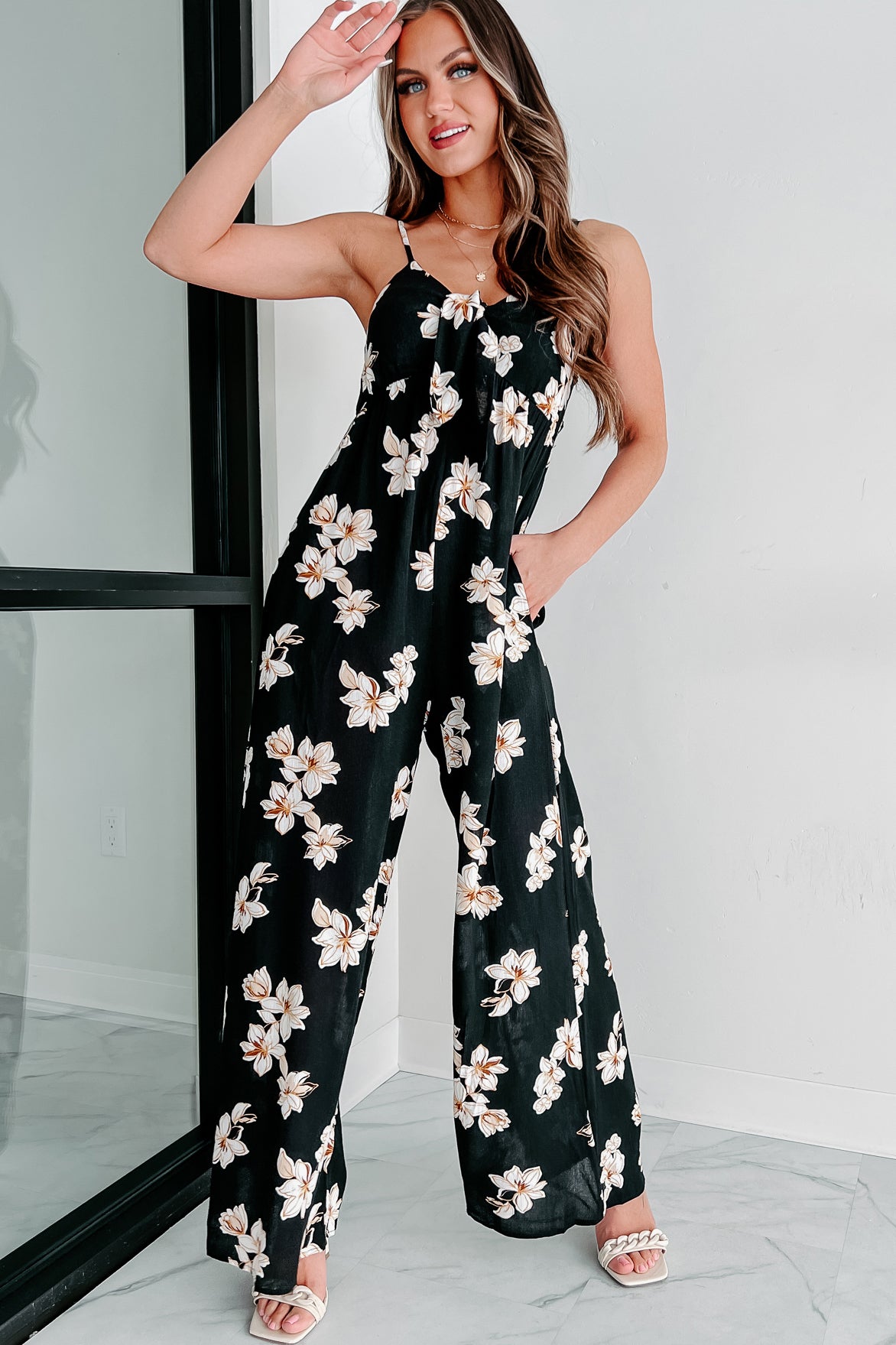 Walks On The Beach Floral Wide Leg Jumpsuit (Black)