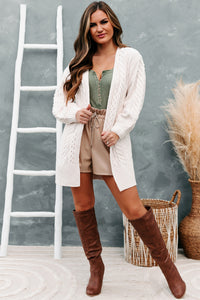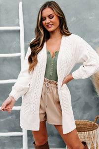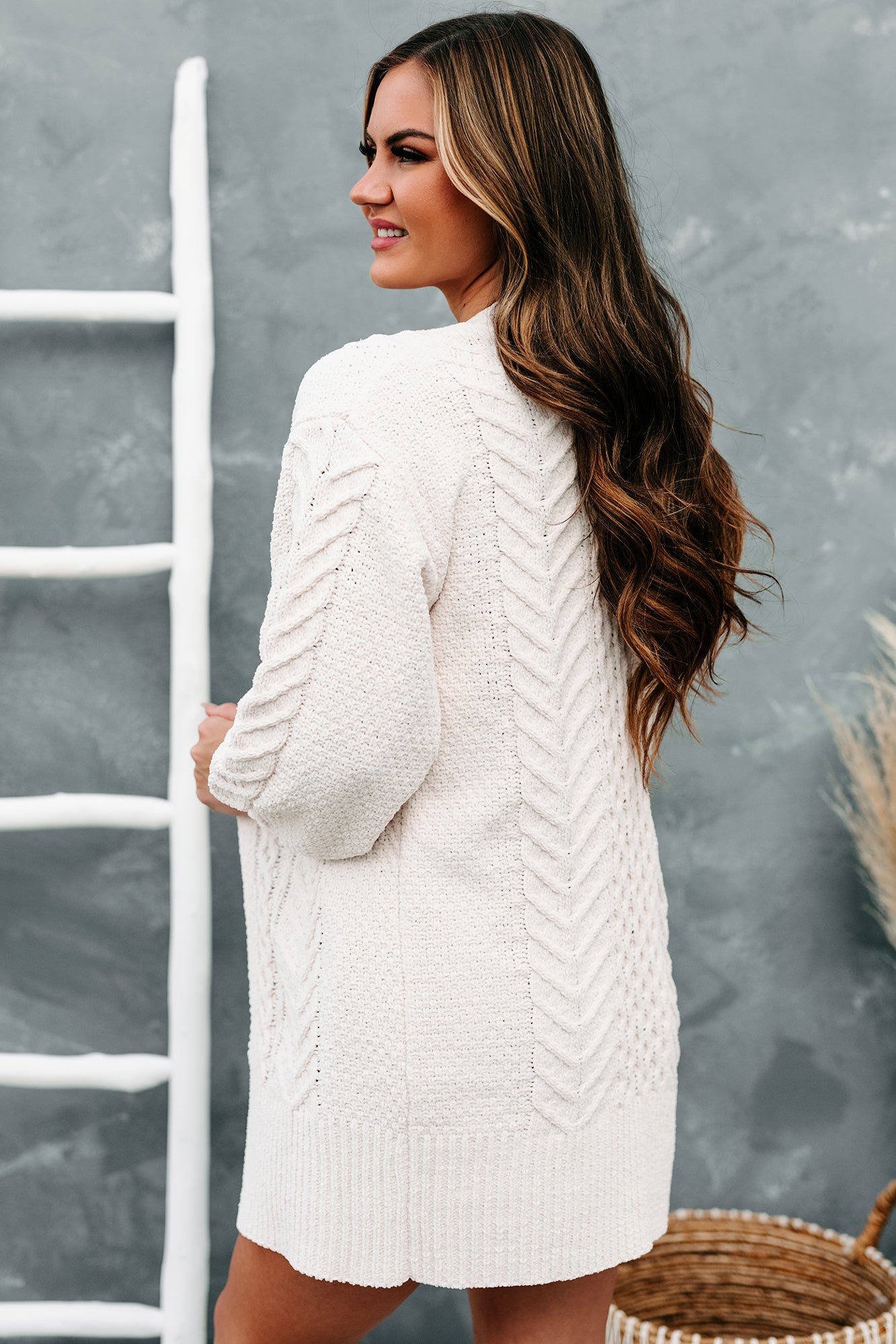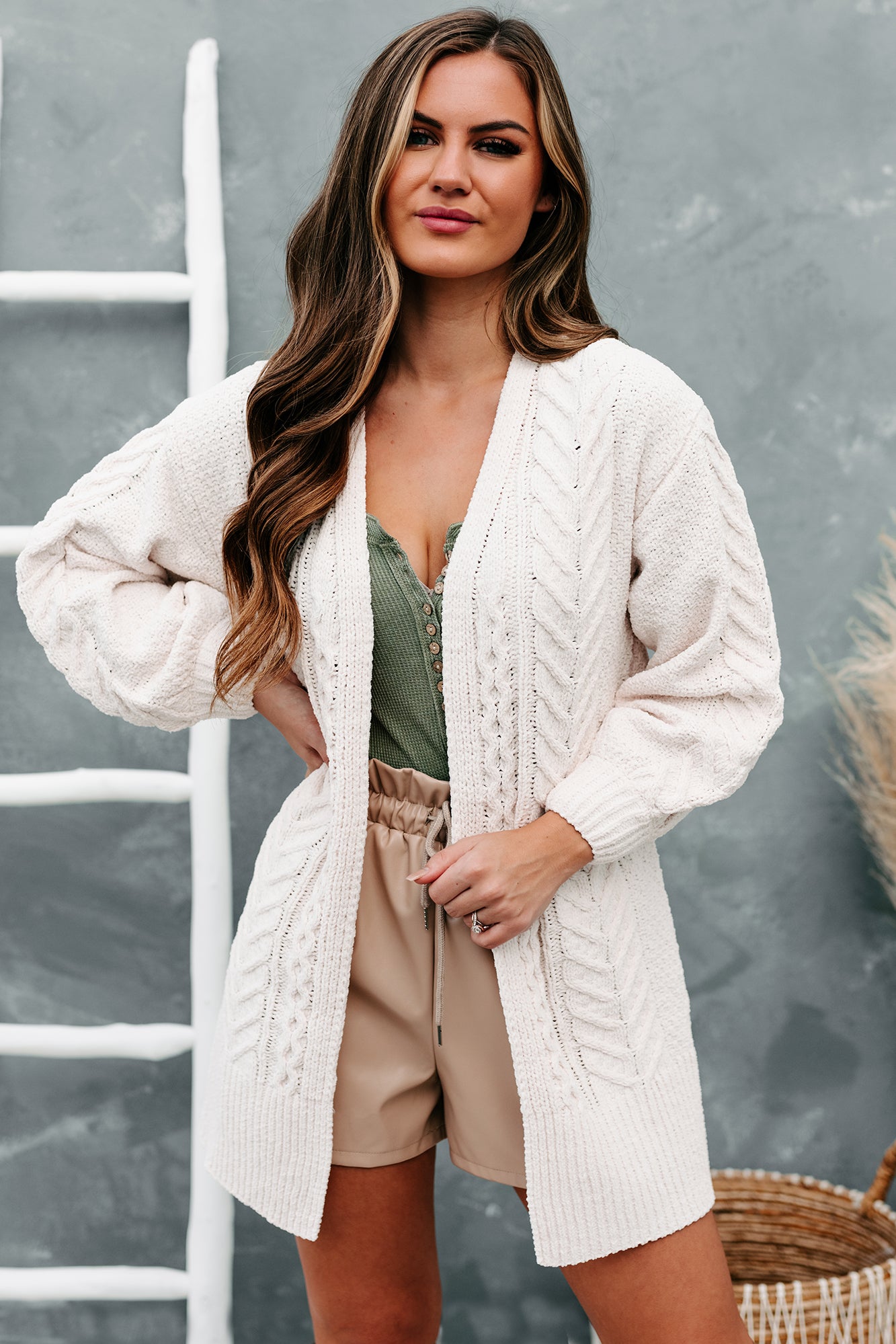 Warmest Occasion Chenille Cable Knit Cardigan (Ecru)