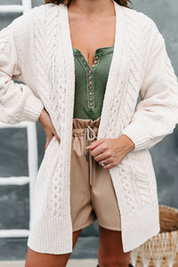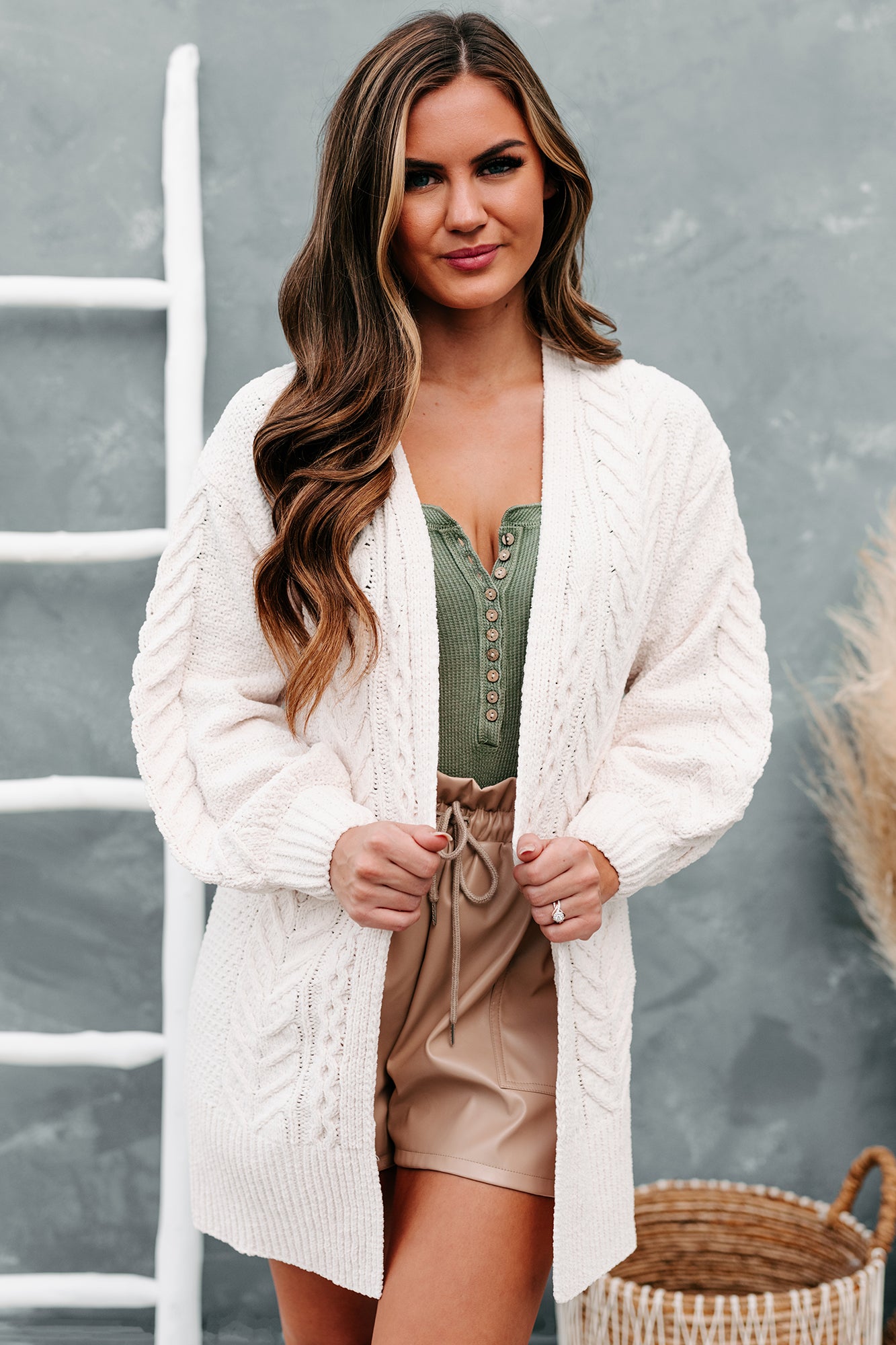 This Ecru, Open Front, Chenille Knit Cardigan Is Going To Be Your New Favorite Cardigan!