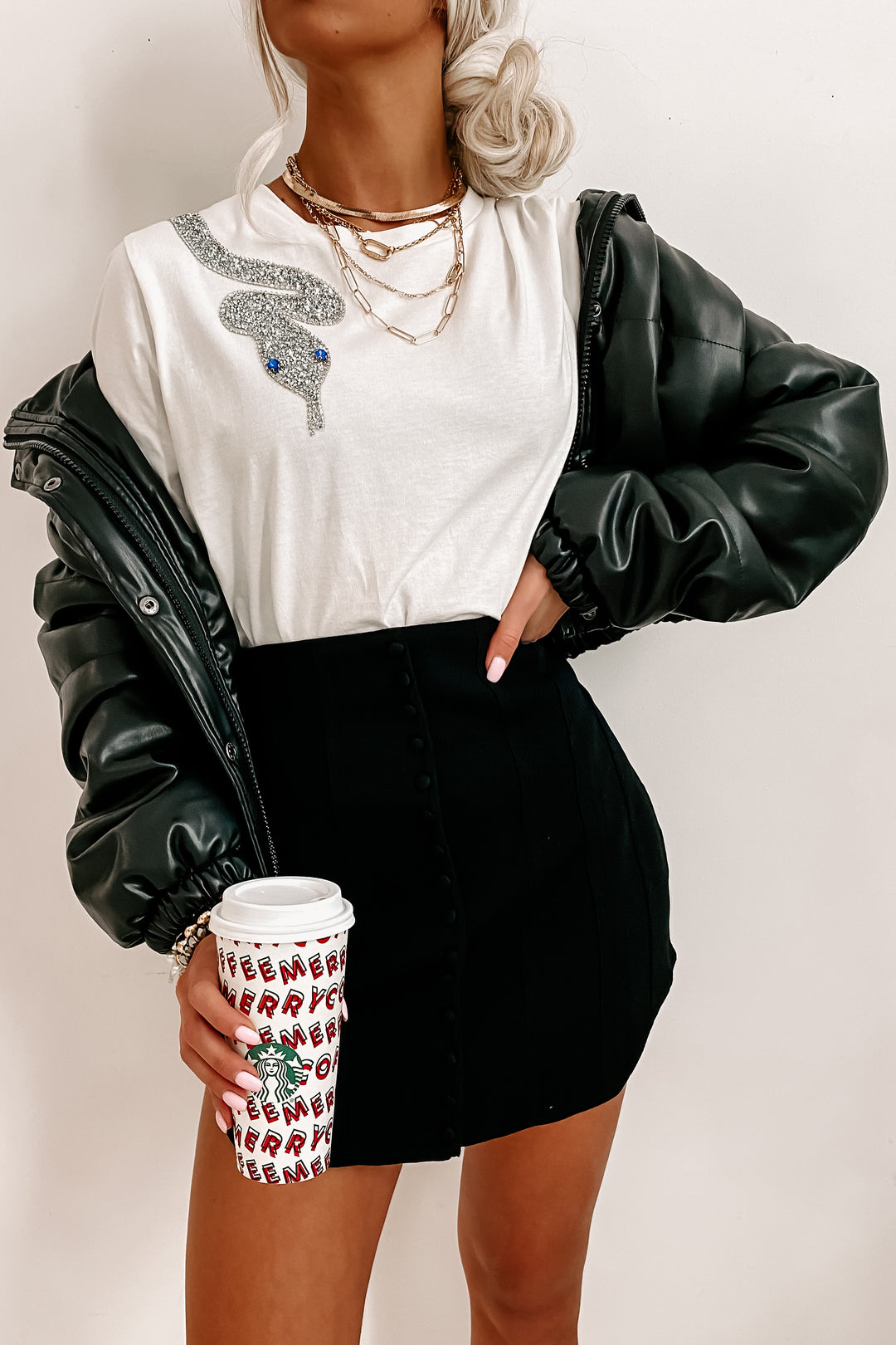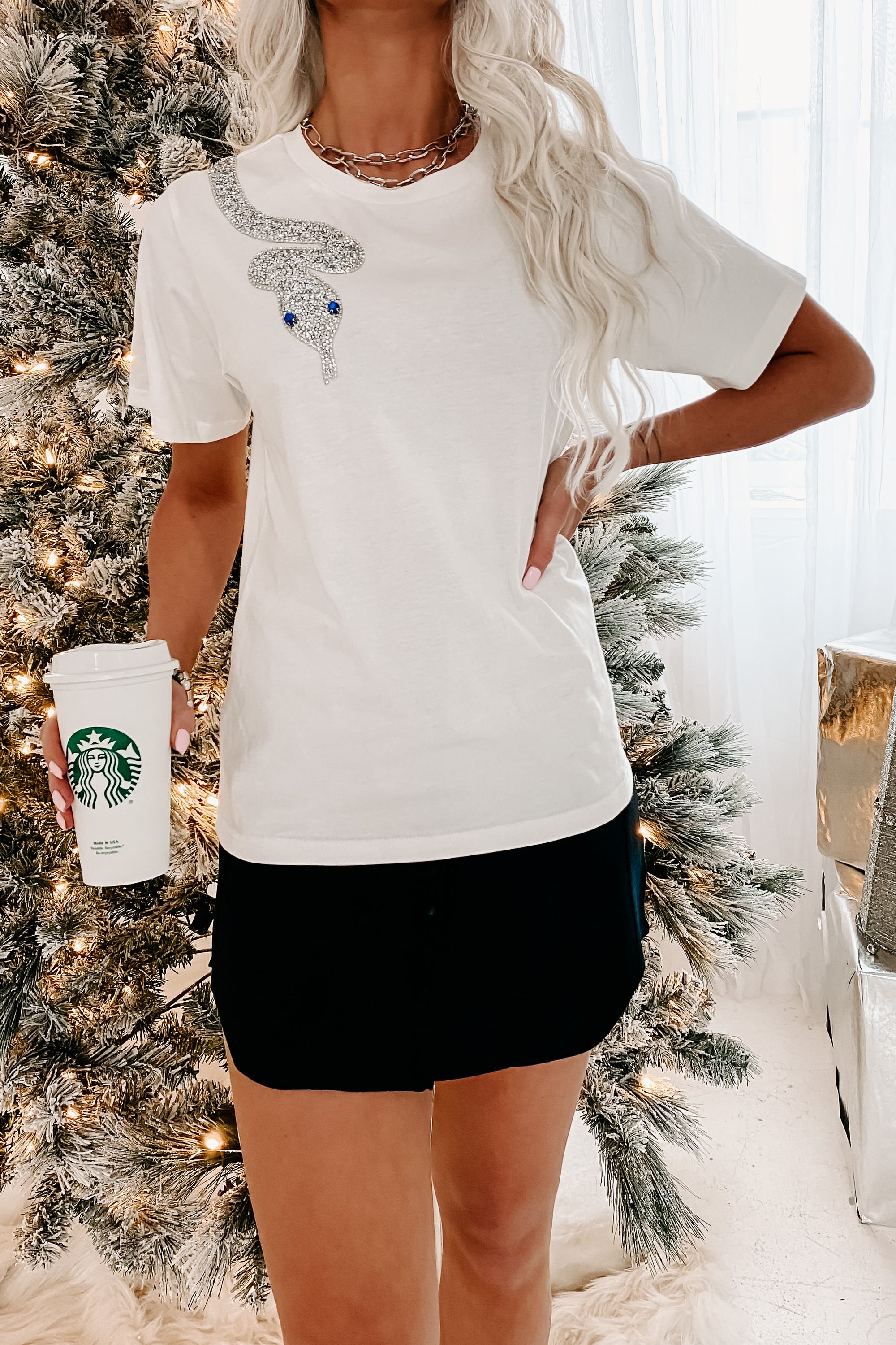 Be A Little Boujee With This White, Rhinestone Snake T-Shirt!