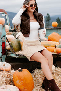 This Cropped Puffer Vest Will Have You Looking Like A Snow Bunny In No Time! The Faux Fur/Ribbed Combo Will Give Your Outfit Some Added Texture!