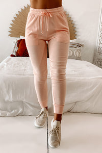 Weekend Desire Drawstring Waist Joggers (Pale Pink)