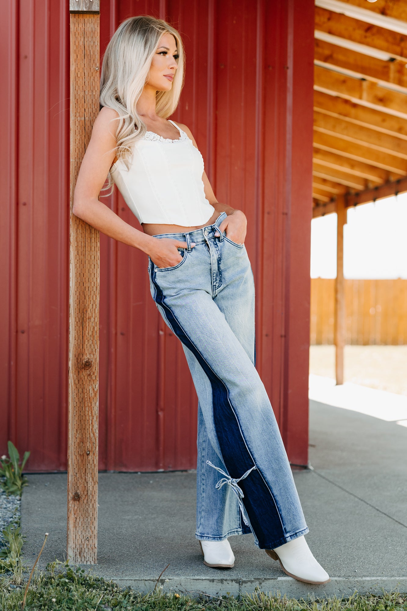 Wes Contrast Side Saige Denim Wide Leg Jeans (Medium Light) - NanaMacs