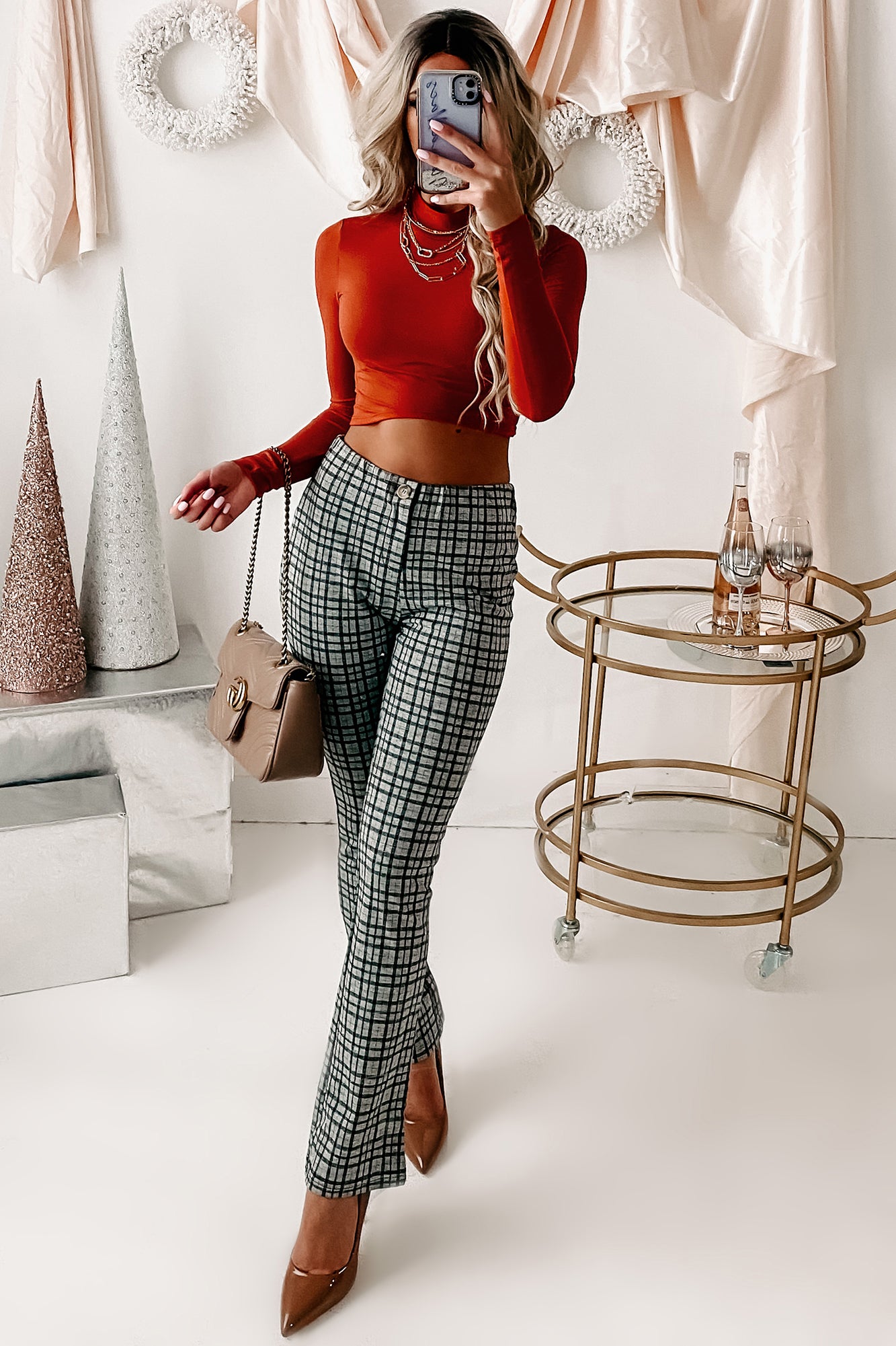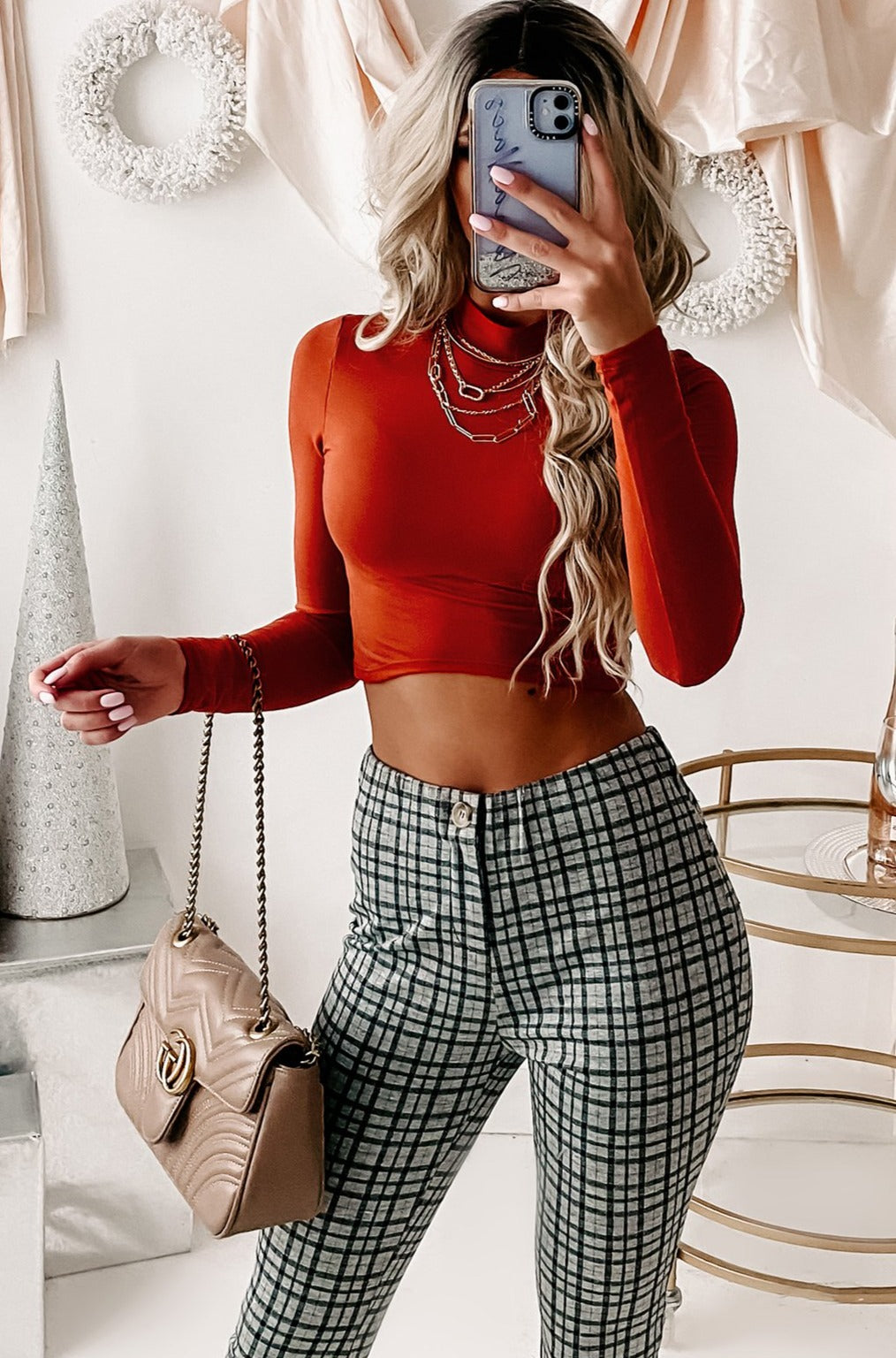 Westwood Long Sleeve Mock Neck Crop Top (Rust) - NanaMacs