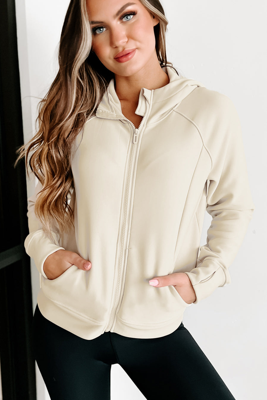 LOOKING TO ADD A NEW COMFY PIECE TO YOUR WARDROBE? LOOK NO FURTHER THAN THIS SOFT, BONE ZIPPER FRONT HOODIE TOP.PERFECT FOR ANY OCCASION, AND KEEPING YOU WARM!