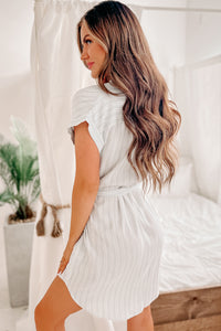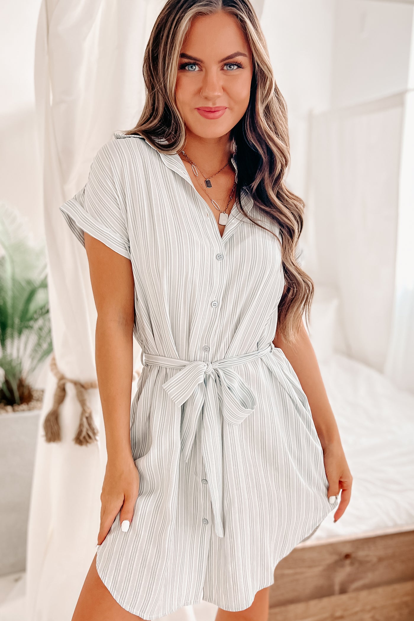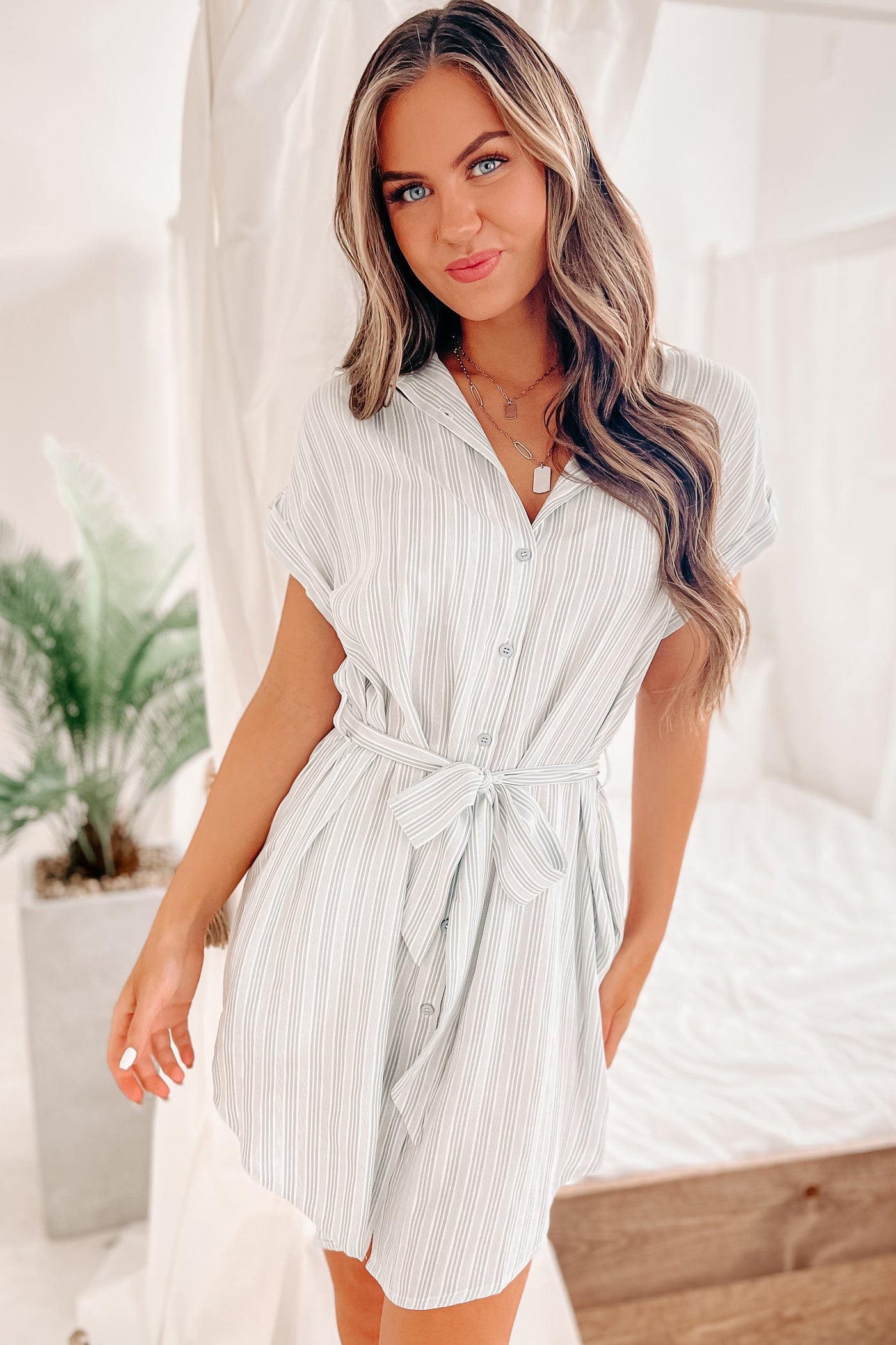 This Blue & White, Striped Shirt Dress With A Tie-Waist Detail, Is Perfect To Pair With Some Strappy Sandals For A Cute And Casual Look!