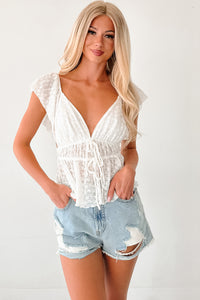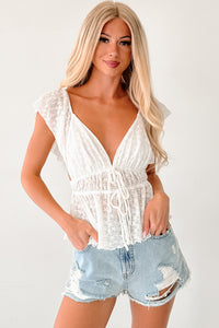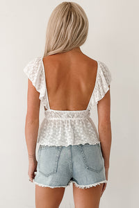 Whispering Love V Neck Floral Lace Top (Off-White)