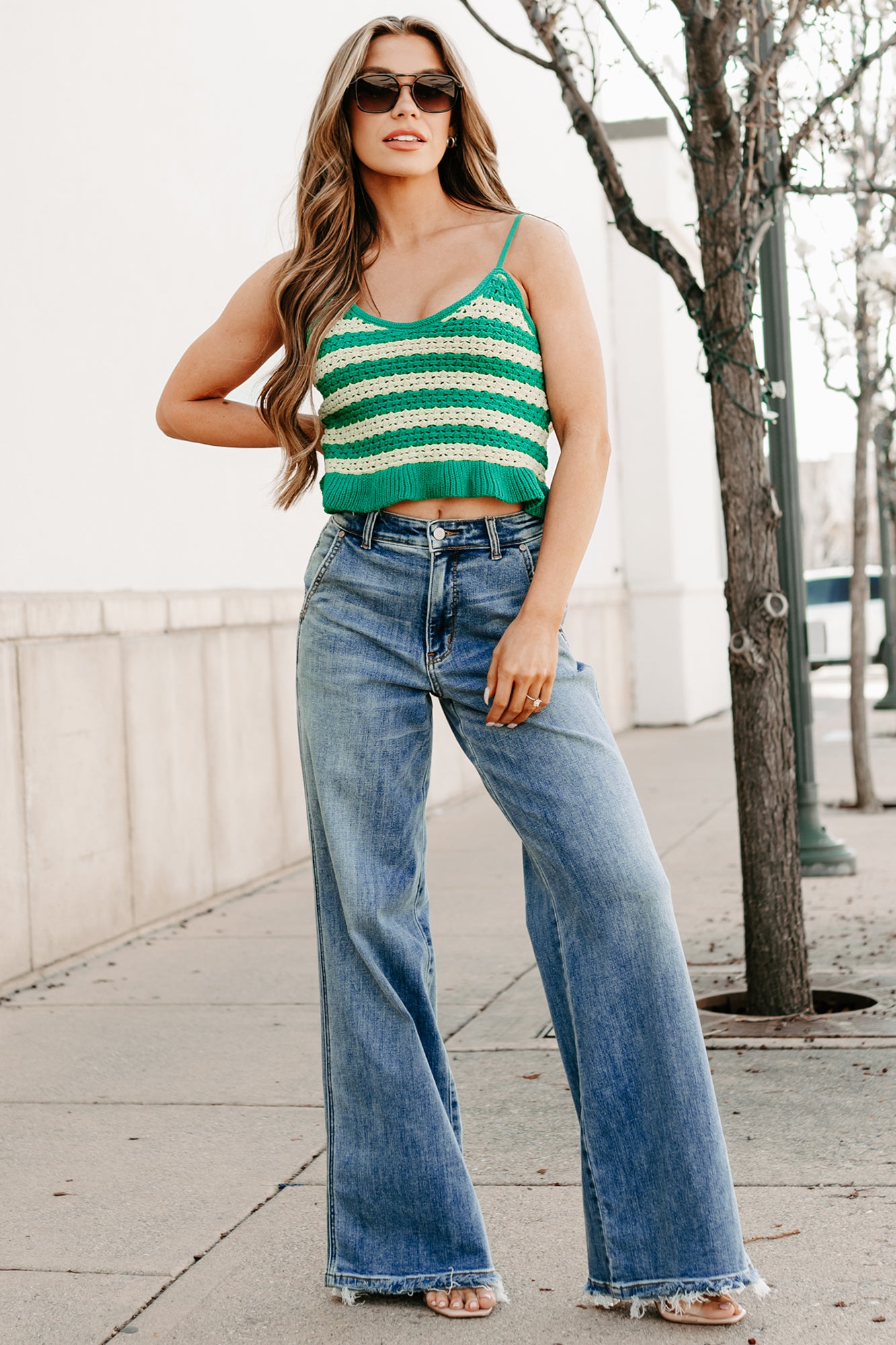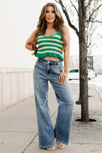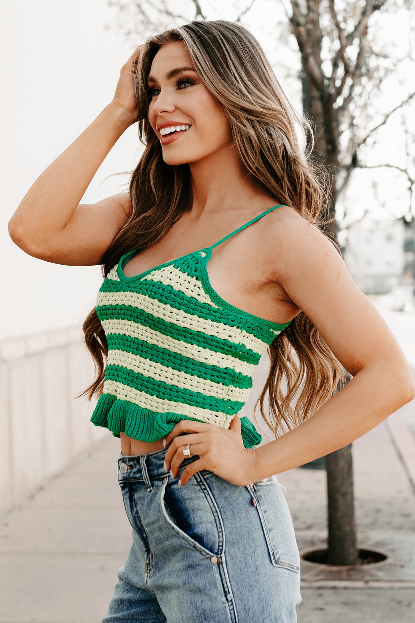 Wild Dreamer Striped Crochet Top (Kelly Green)